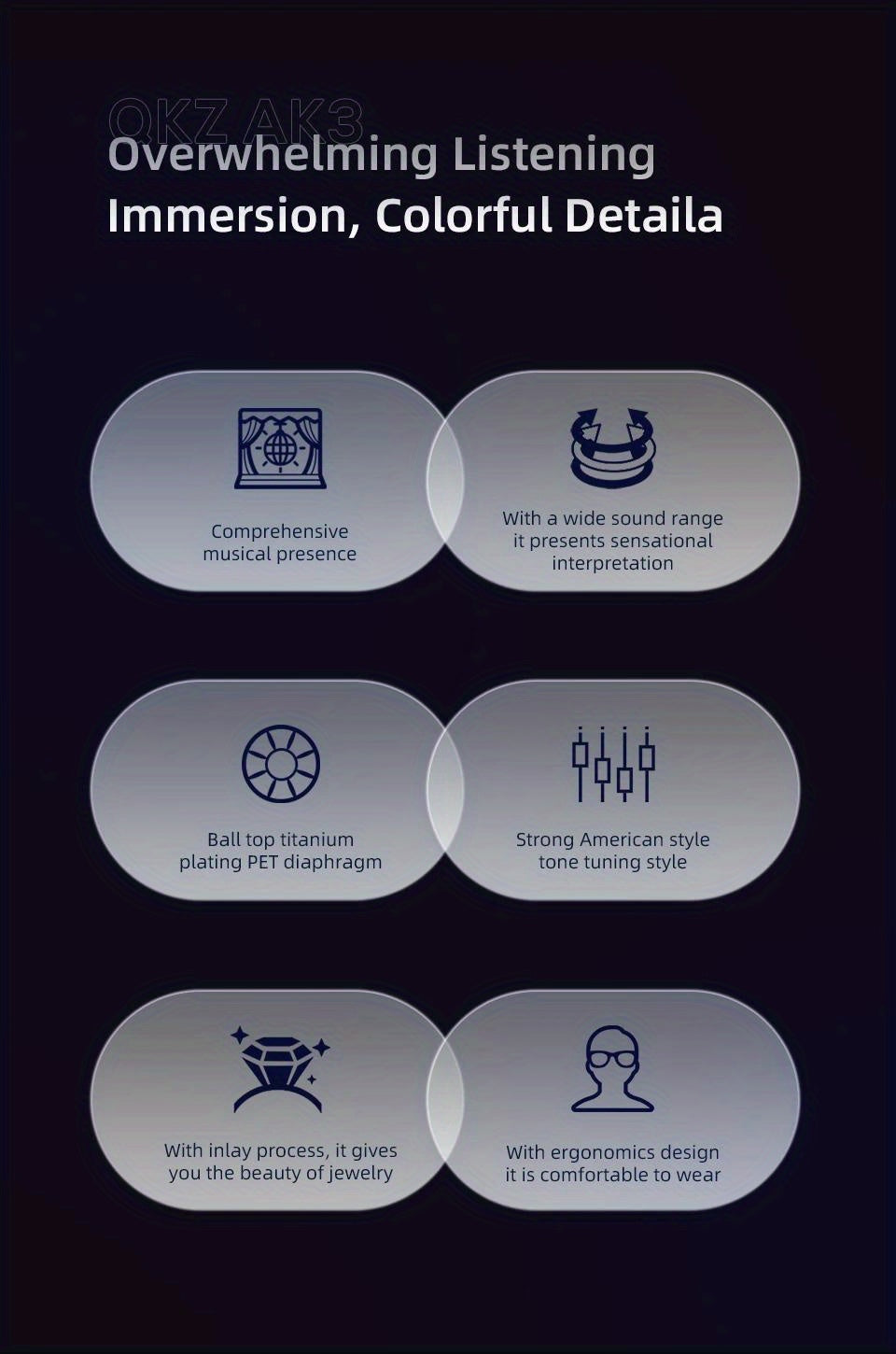AK3 FiLe High-Fidelity In-Ear Headphones with Vivid Color Design Immersive Subwoofer Noise Cancelling Crystal-Clear Audio Durable Plastic Gaming Music Monitor Wired Earbuds with Microphone for Calls
