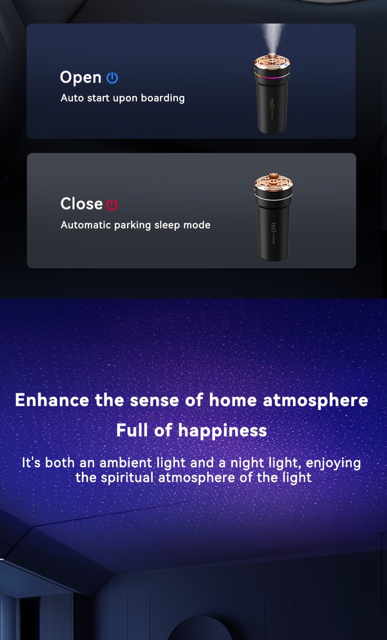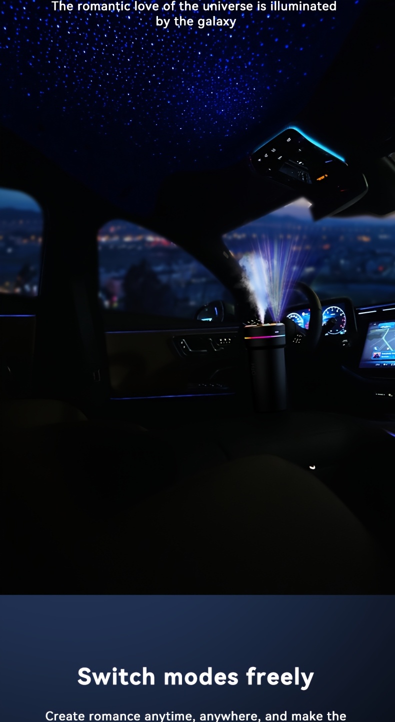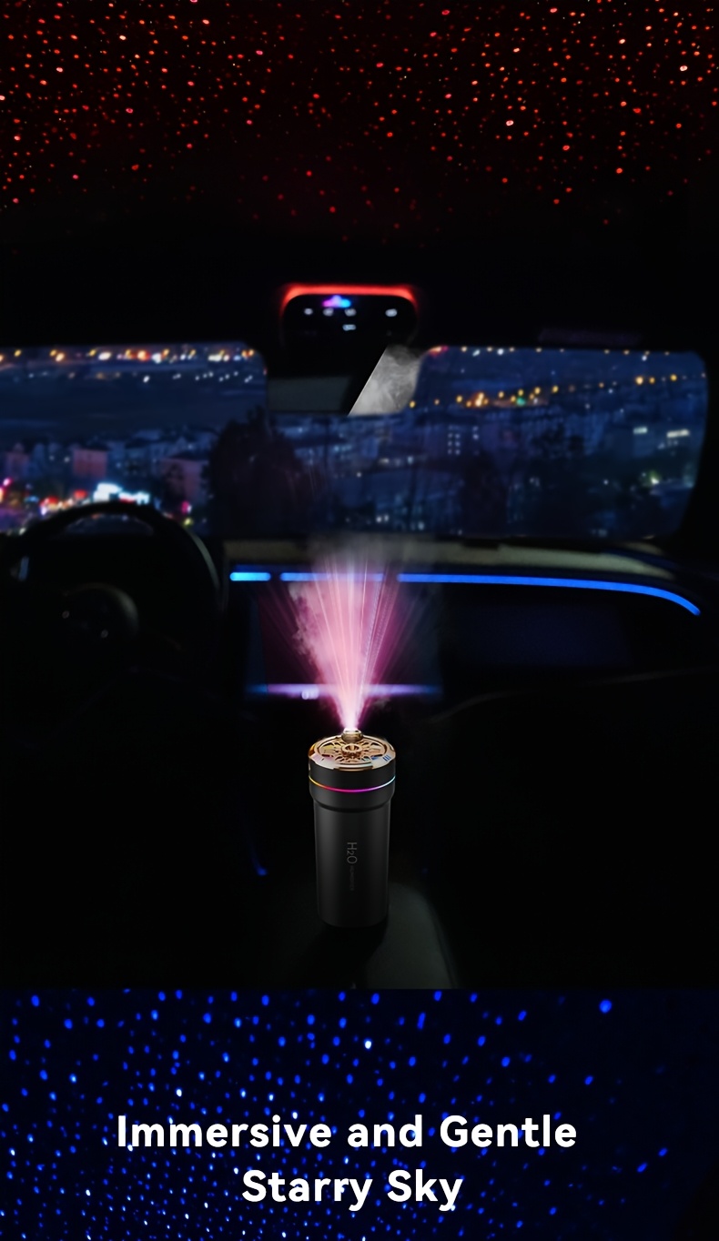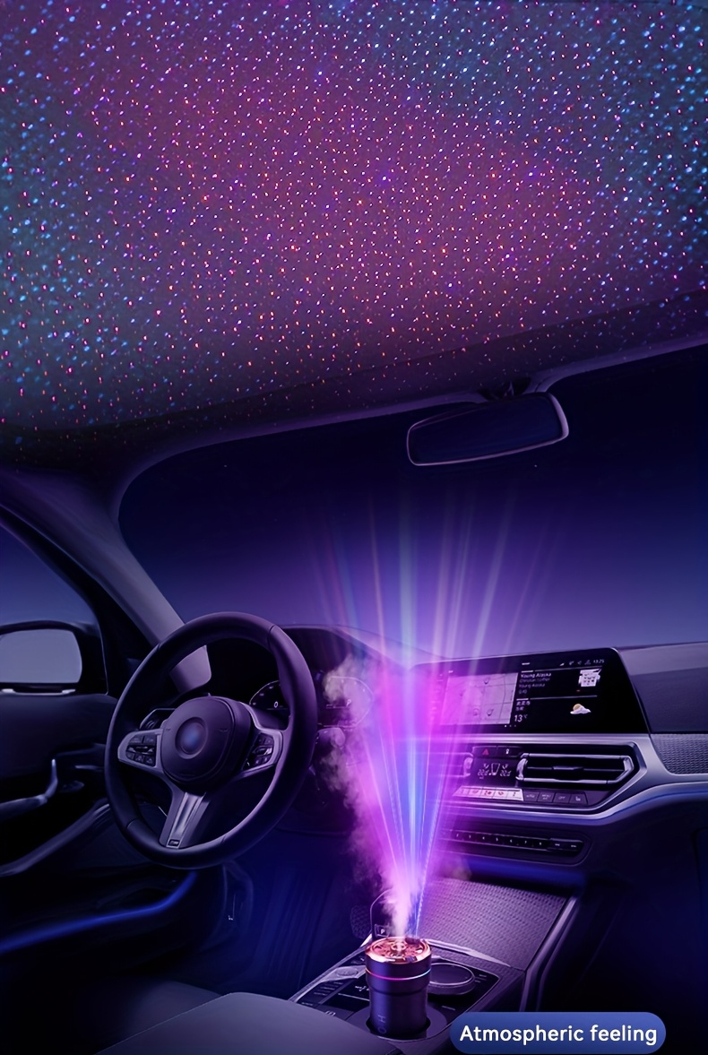 Auto Humidifier with Starry Sky Projection 300ml USB Aromatherapy Diffuser 7-Color Ambient Light for Car Bedroom Dorm Office