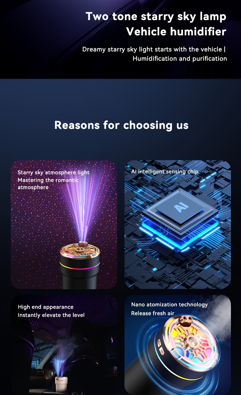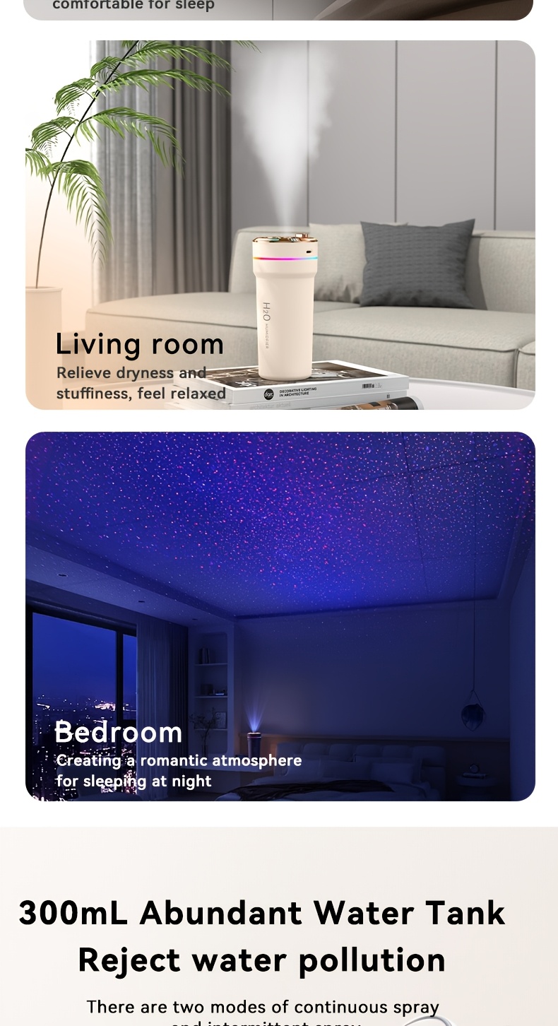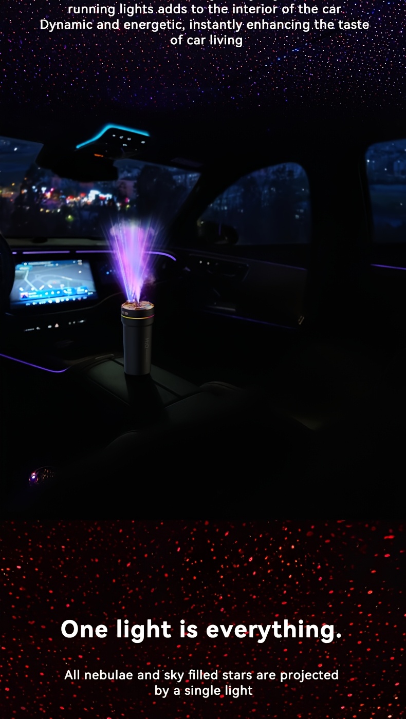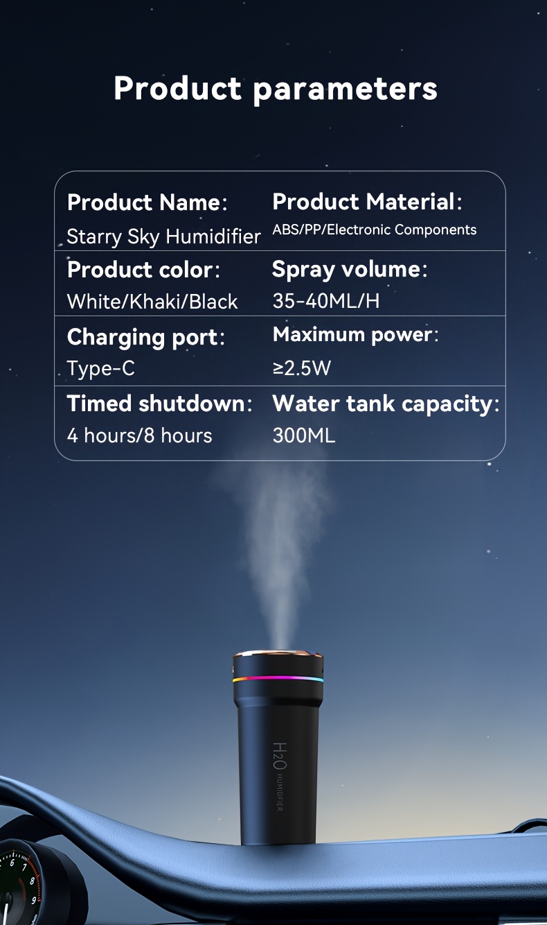 Auto Humidifier with Starry Sky Projection 300ml USB Aromatherapy Diffuser 7-Color Ambient Light for Car Bedroom Dorm Office