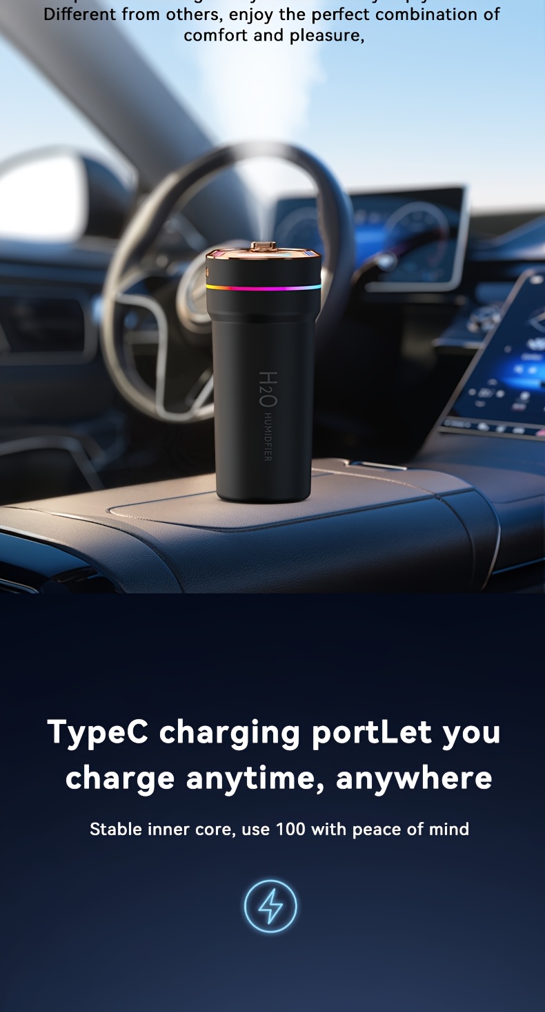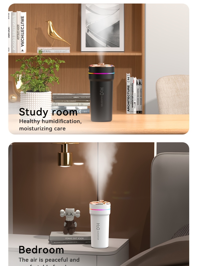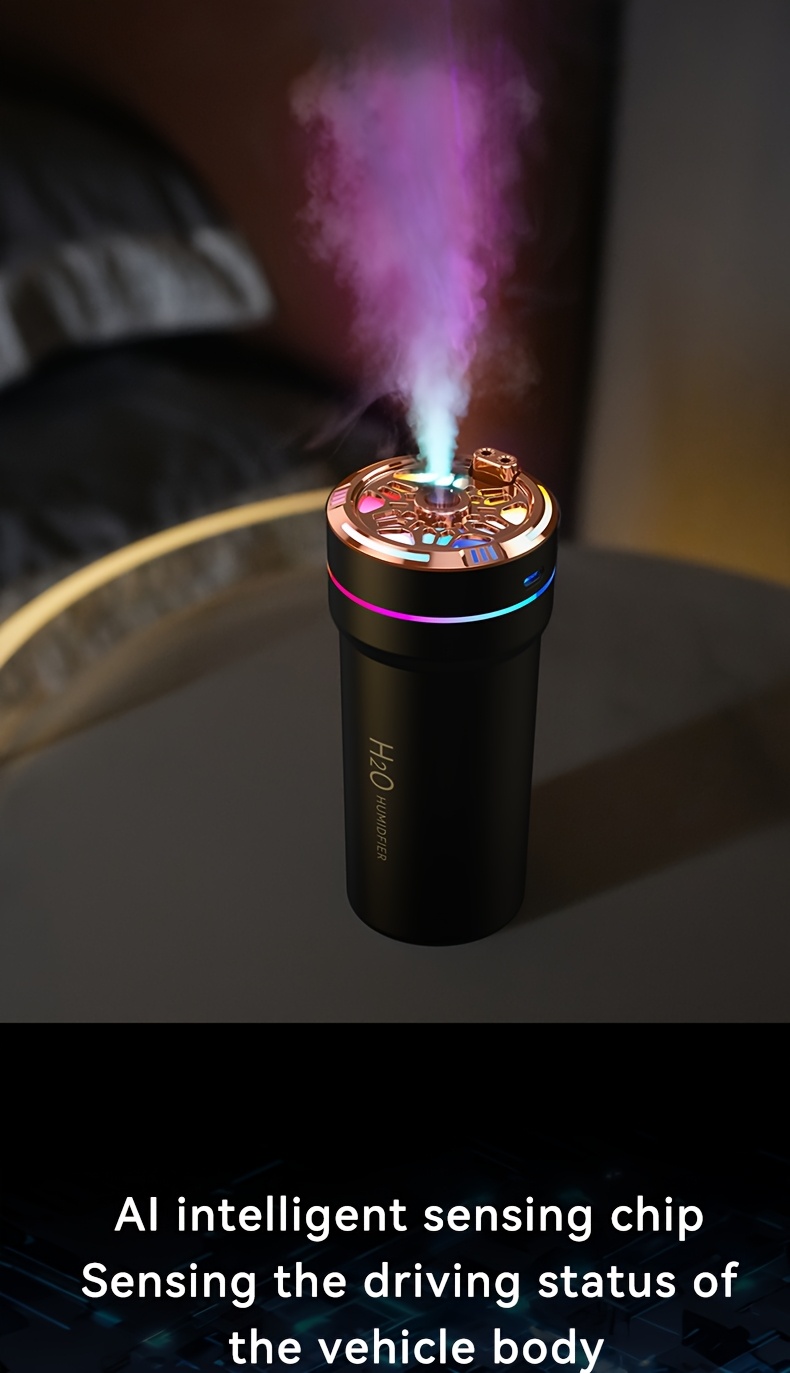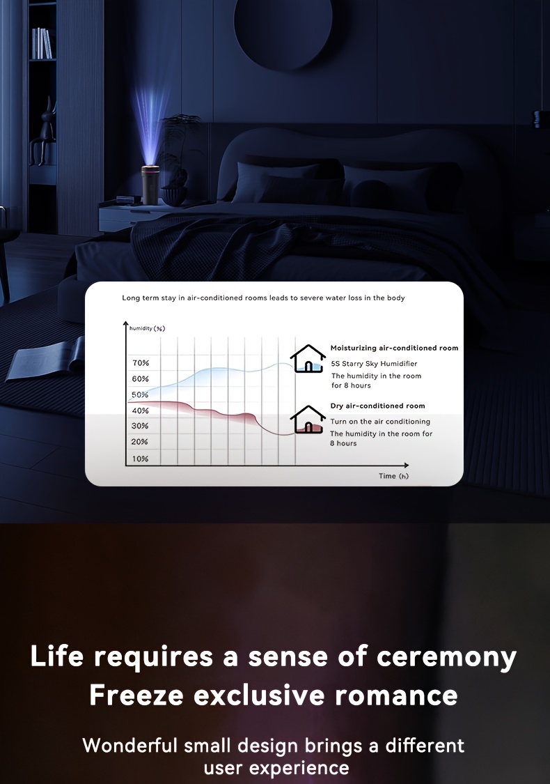 Auto Humidifier with Starry Sky Projection 300ml USB Aromatherapy Diffuser 7-Color Ambient Light for Car Bedroom Dorm Office