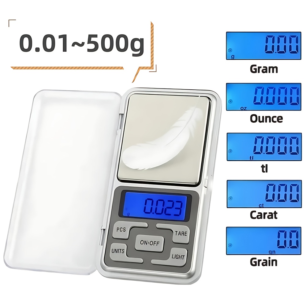 500g Capacity Digital Pocket Scale 0.01g/0.001g High Precision Portable Mini Scale with LCD Display for Jewelry Tea Medications Gemstones Reloading Kitchen