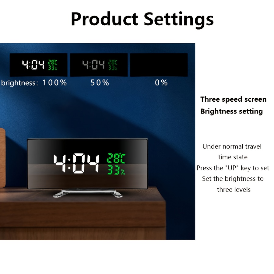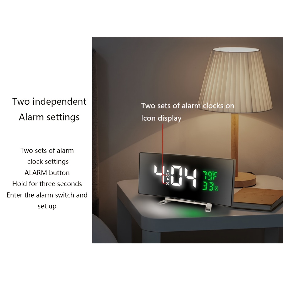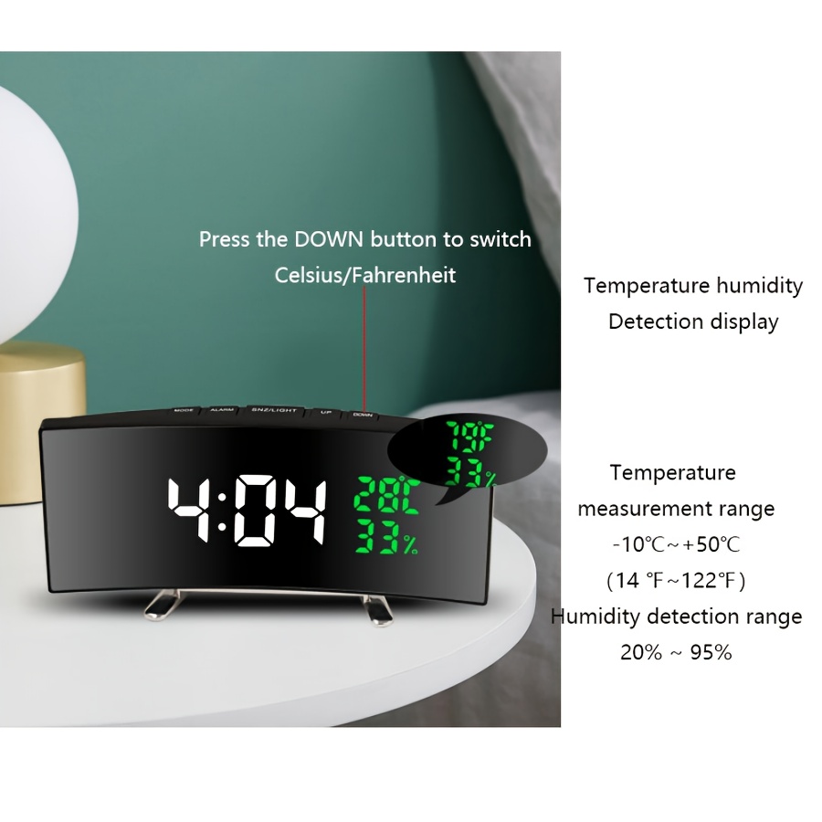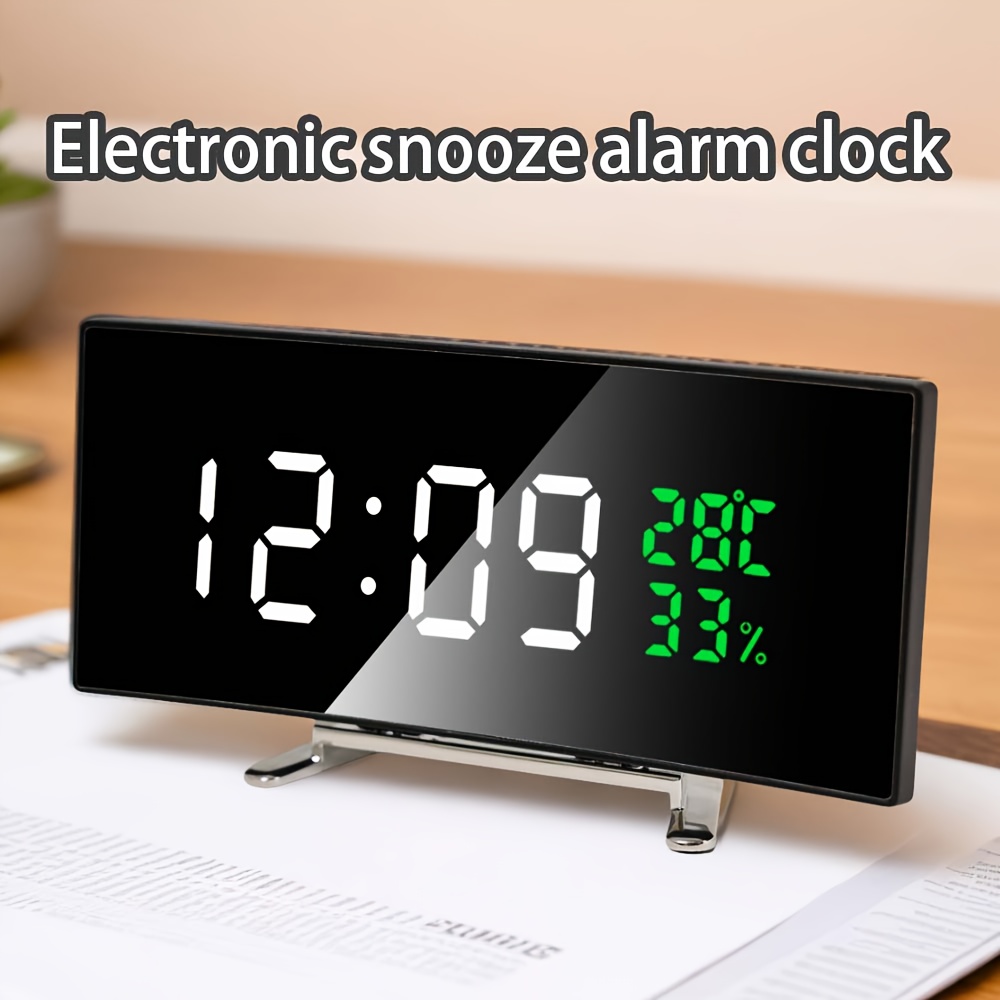 1pc Curved LED Alarm Clock with Large Display Screen Shows Time Temperature Humidity USB Powered Multifunctional Desk Clock