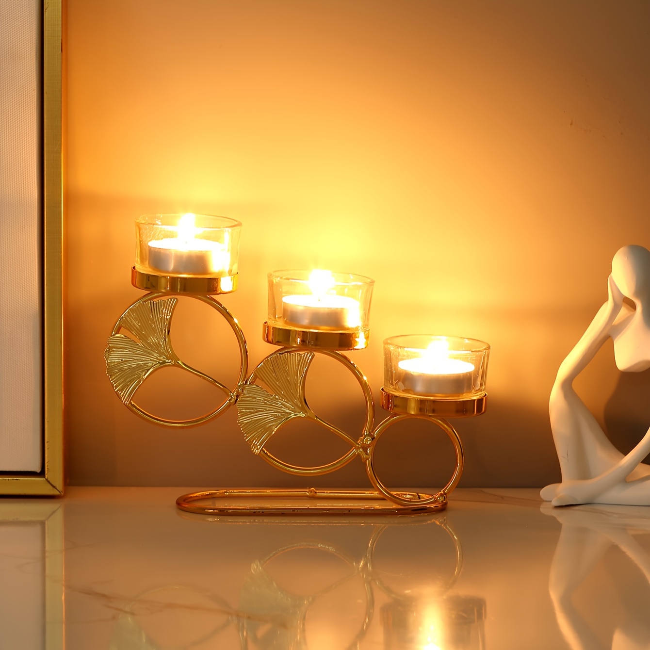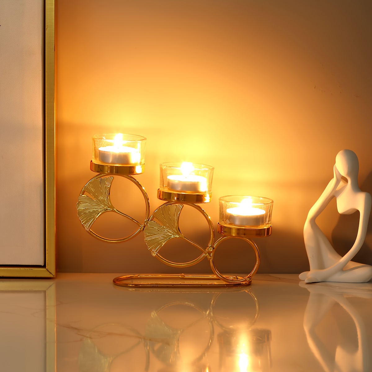 Ginkgo Leaf Multi-head Candle Holder Iron Art Centerpiece for Candlelight Dinner Photo Props Atmosphere Decor