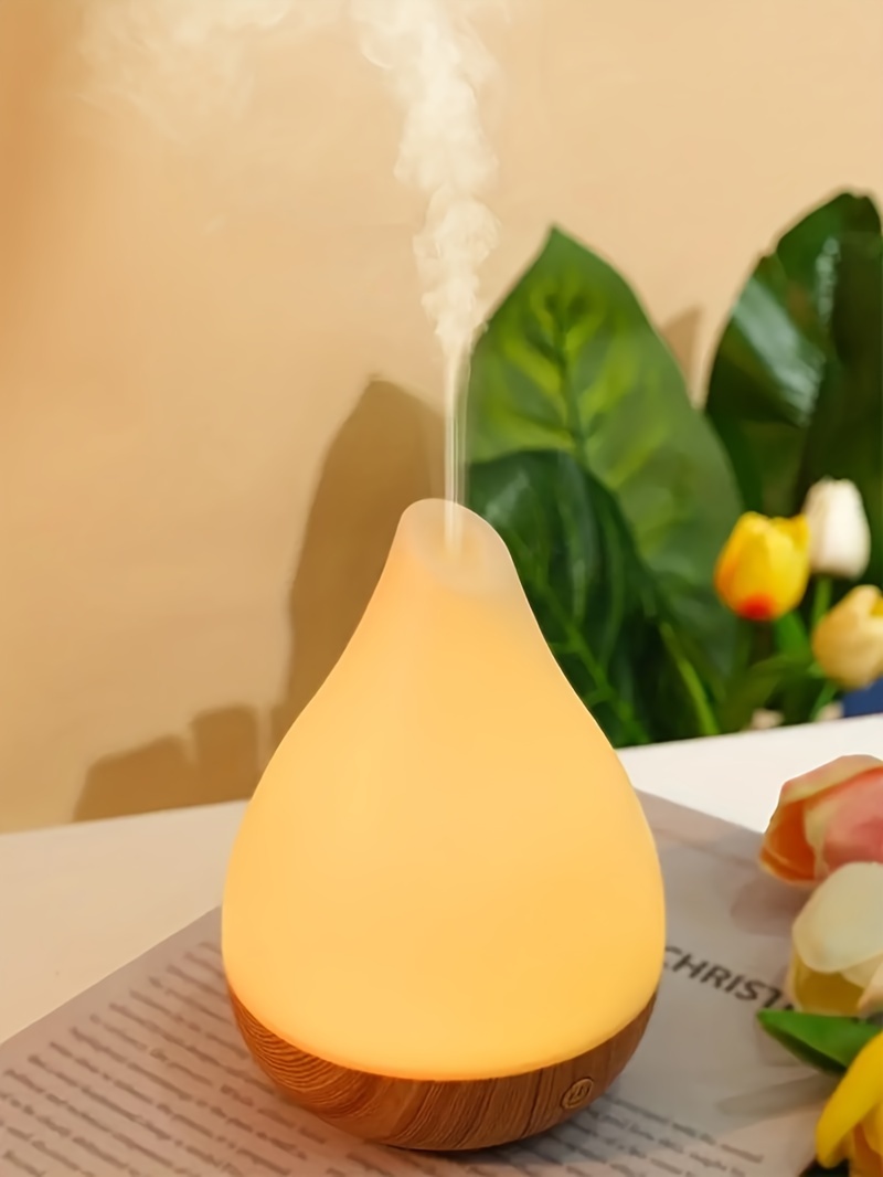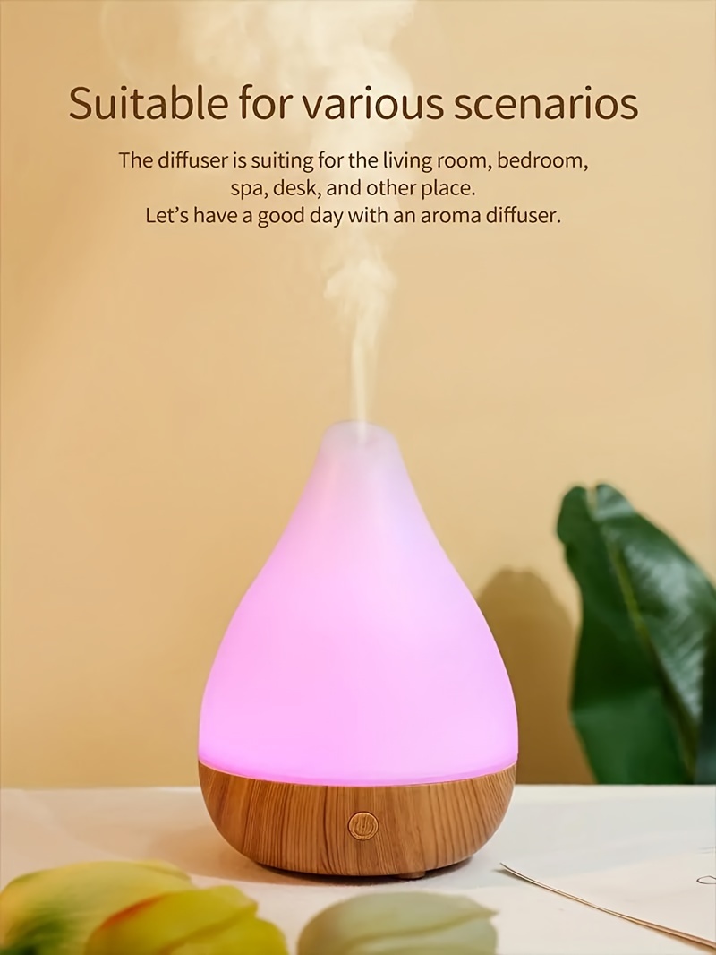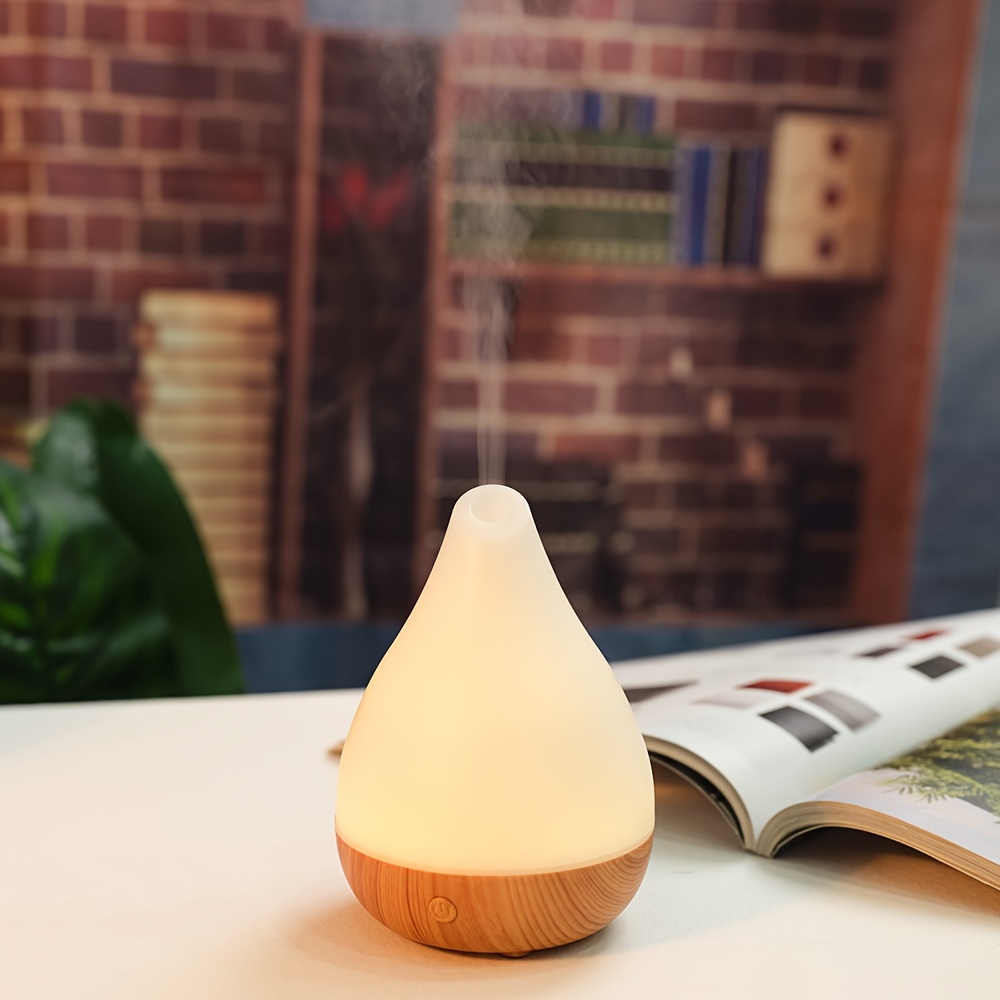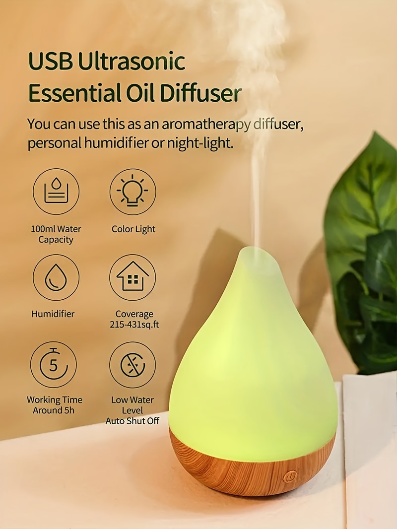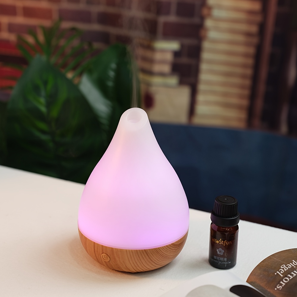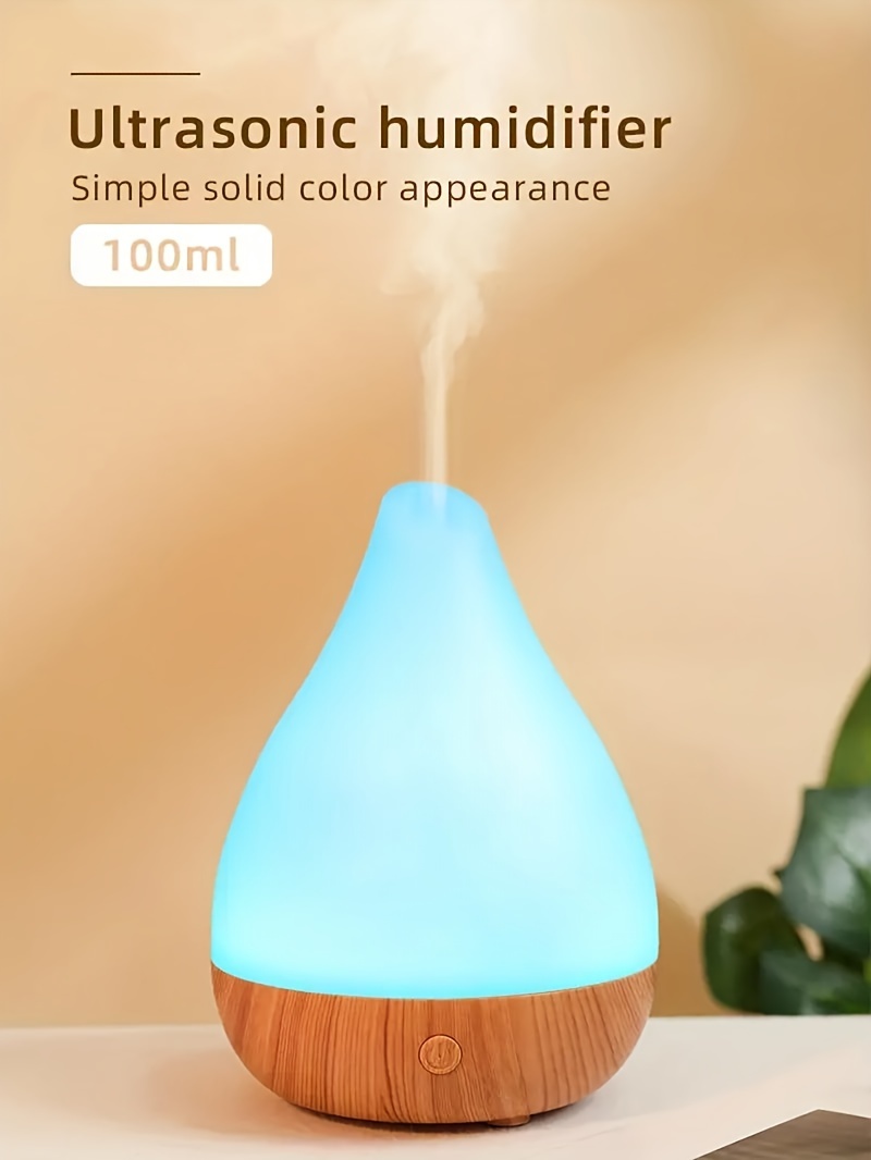 Portable Cool Mist Humidifier with Essential Oil Diffuser Soundwave Technology 7-Color LED Mood Lights Auto Shut-Off USB-Powered Wood Grain Design Digital Display-like Interface Compact Oval for Home Office