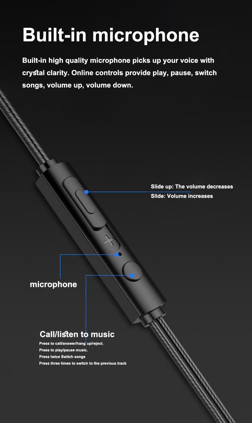 Ergonomic In-Ear Headphones with Microphone 3.5mm Jack - Lightweight Comfortable High-Quality Sound Volume Control for Mobile Phones Laptops Tablets