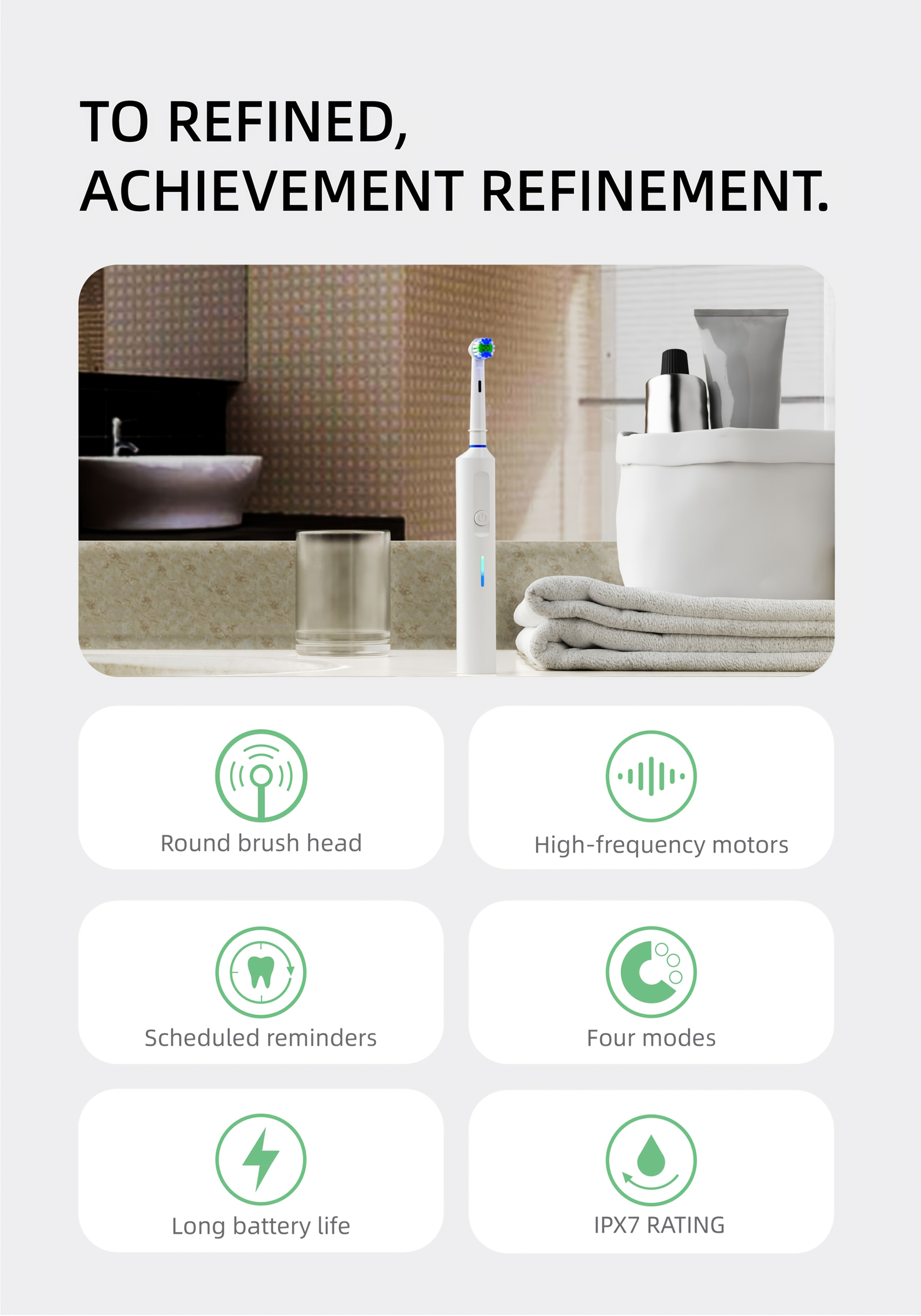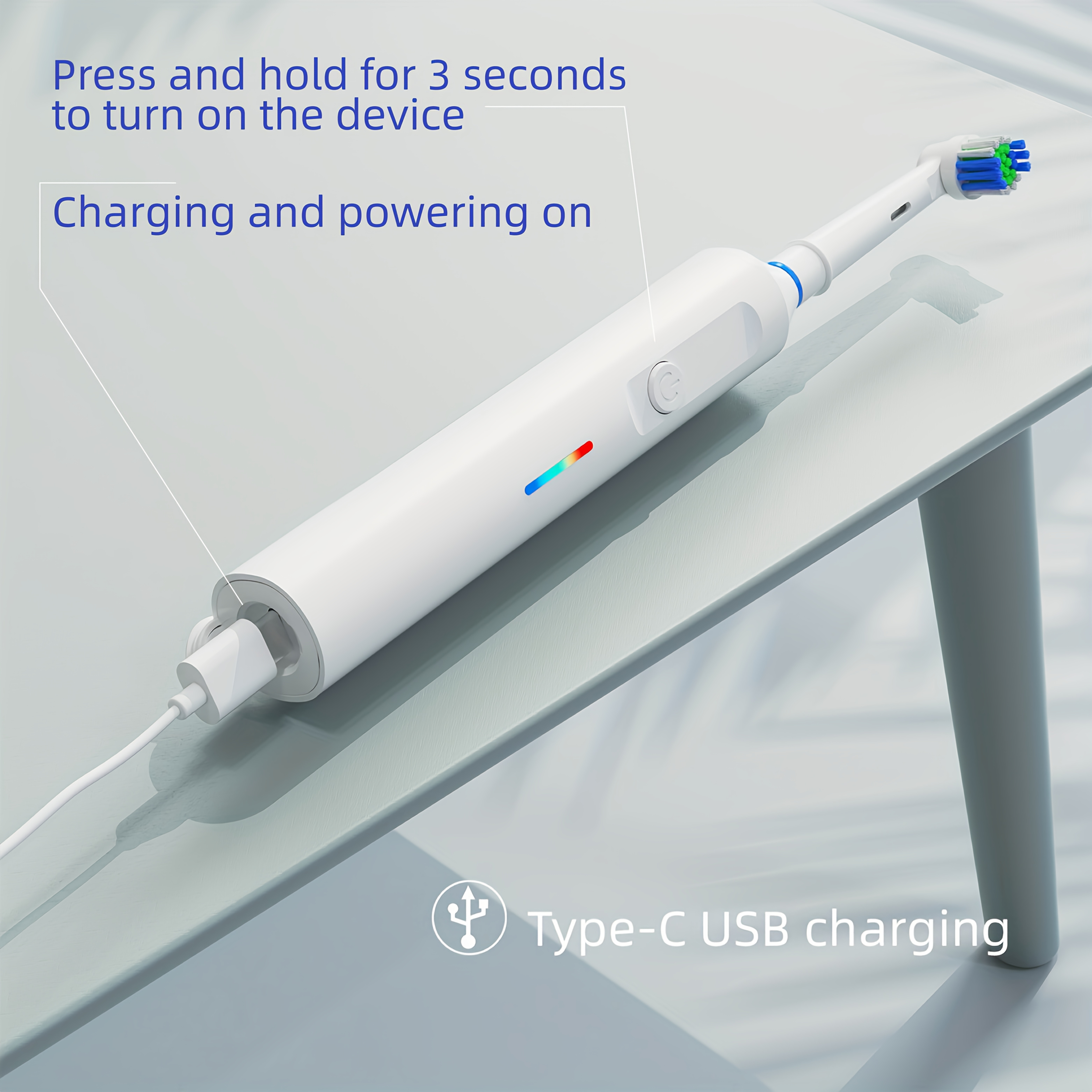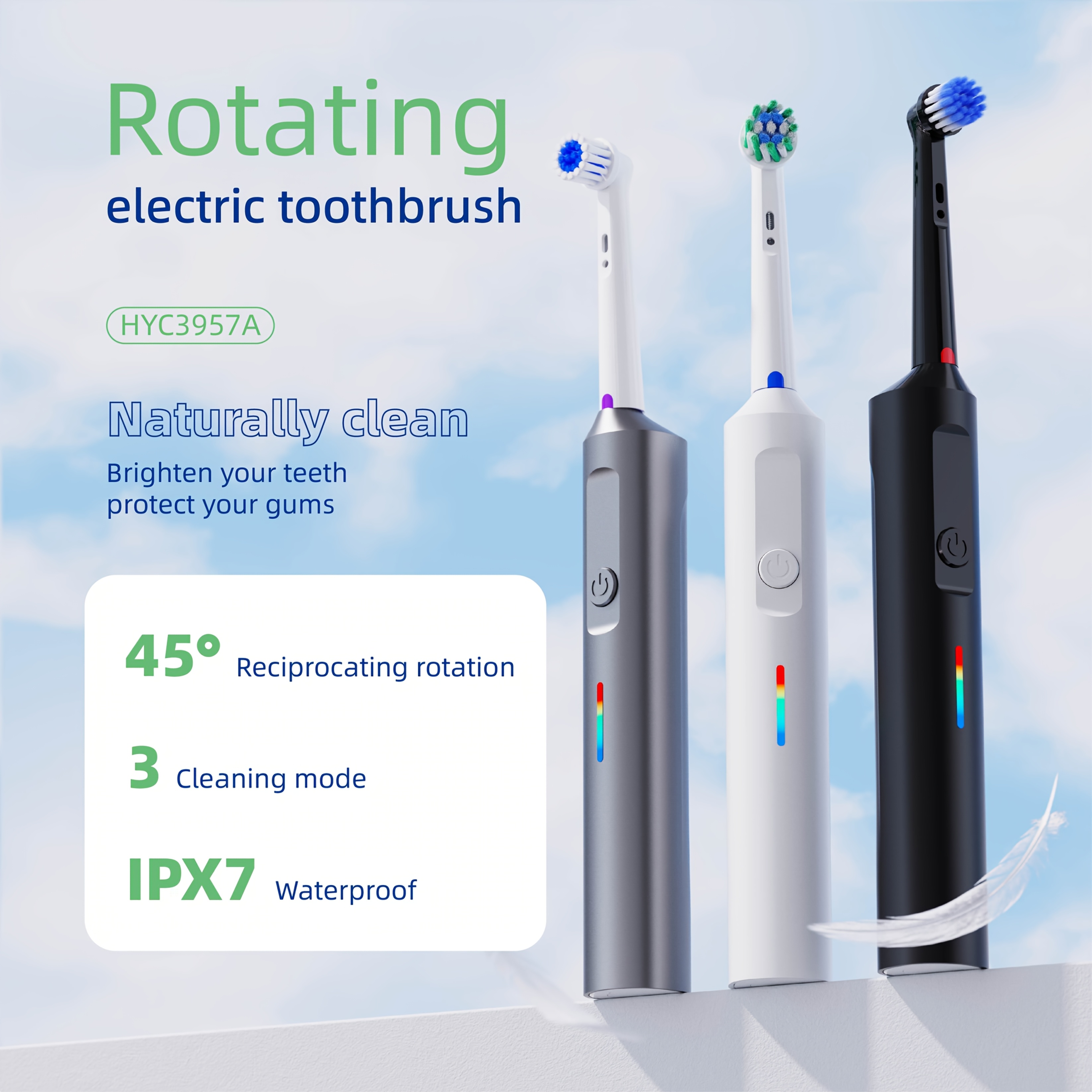Electric Toothbrush for Men Women 3 Modes Rotating 4/8 Brush Heads Type-C Charging Deep Cleaning Soft Bristles IPX7 Waterproof Tongue Scraper