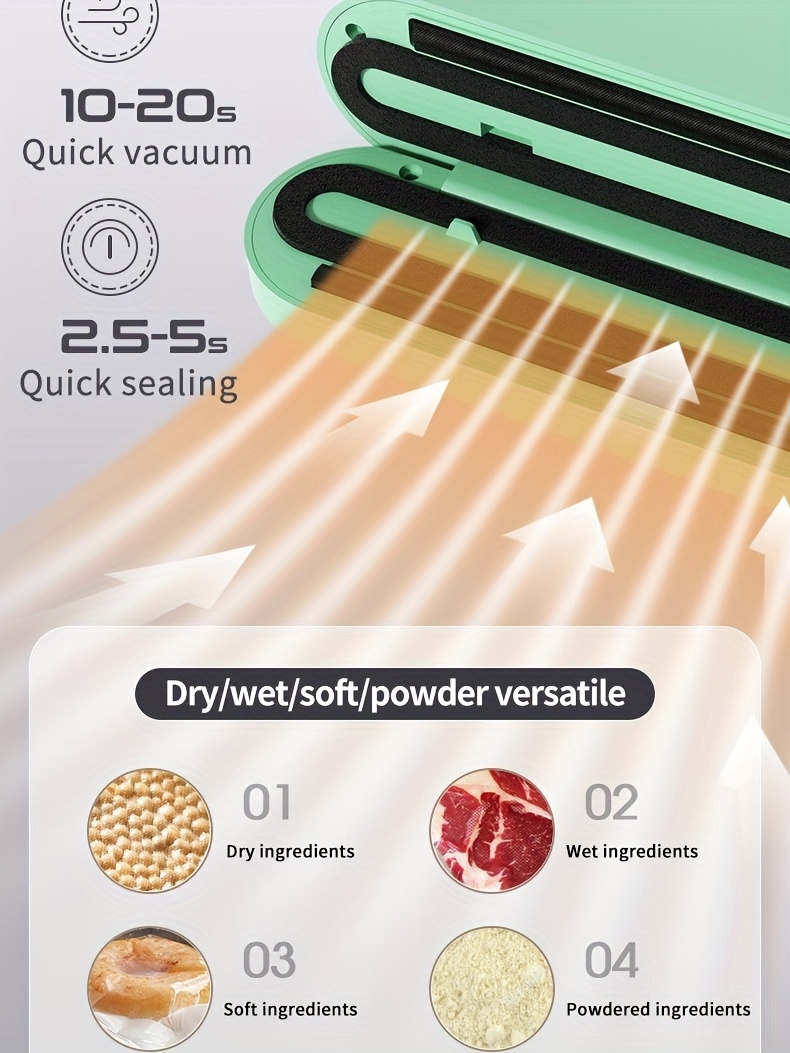 90Kpa Automatic Vacuum Sealer Machine with Cutter & Bags Heavy Duty Food Saver Smart Seal System Dry Moist Modes Portable for Meat Vegetables Camping Hunting