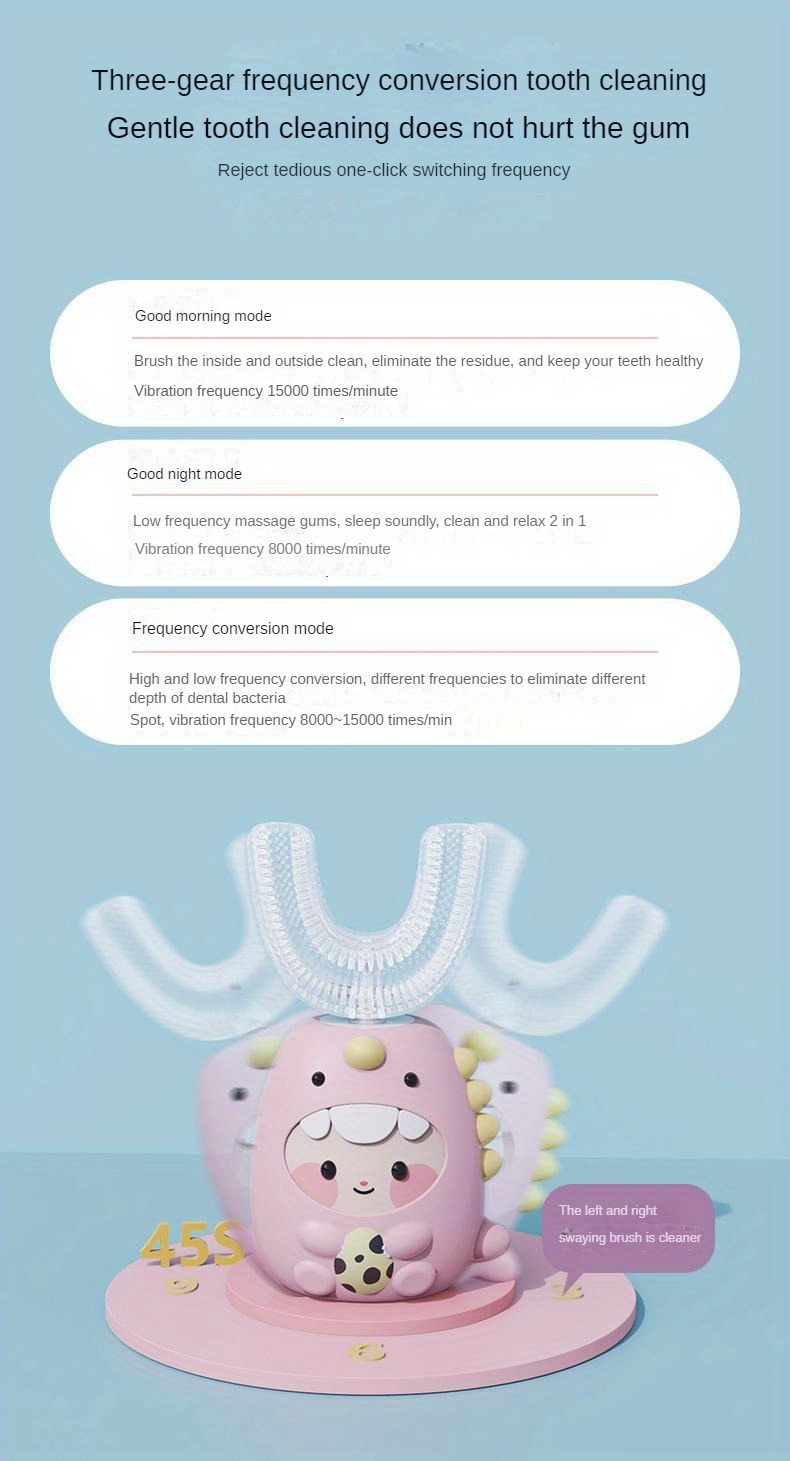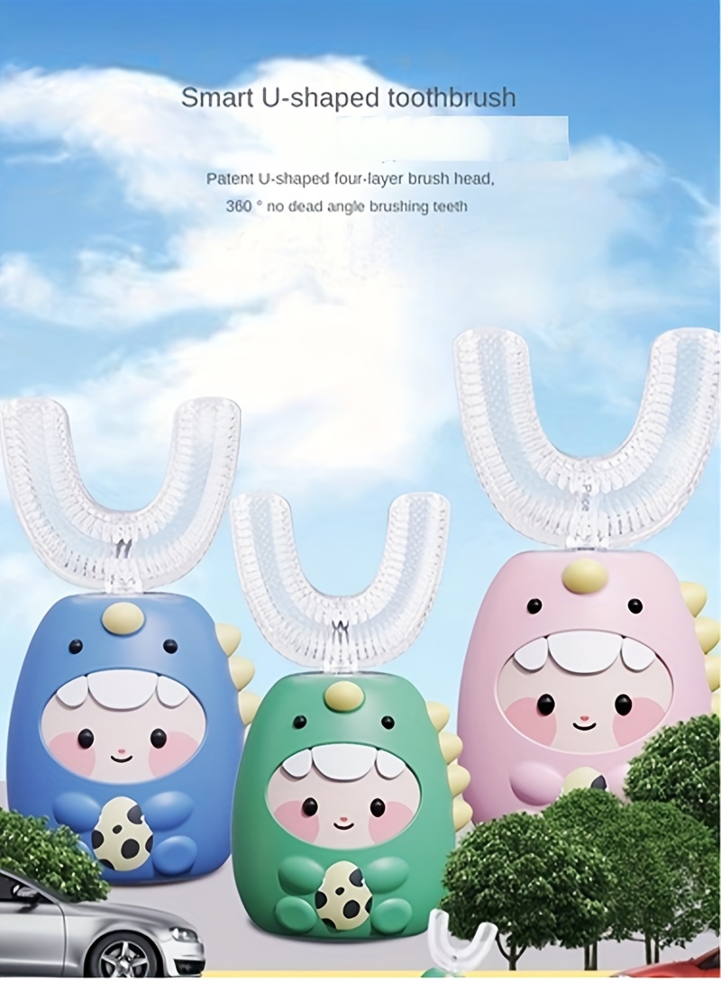 Electric Toothbrush Auto Timer 3 Cleaning Modes Soft Brush Heads Cute Dinosaur Penguin Shark Design Best Gift