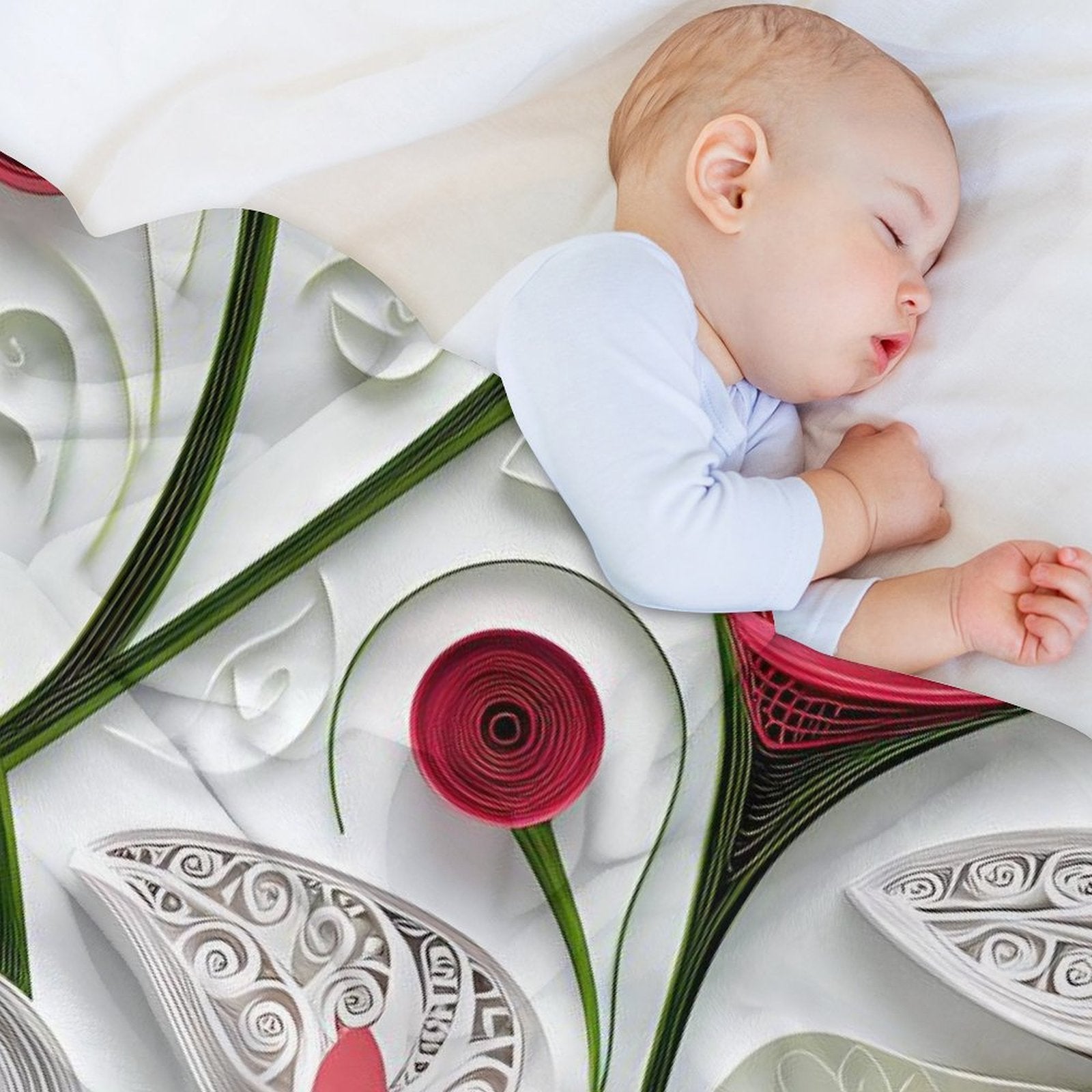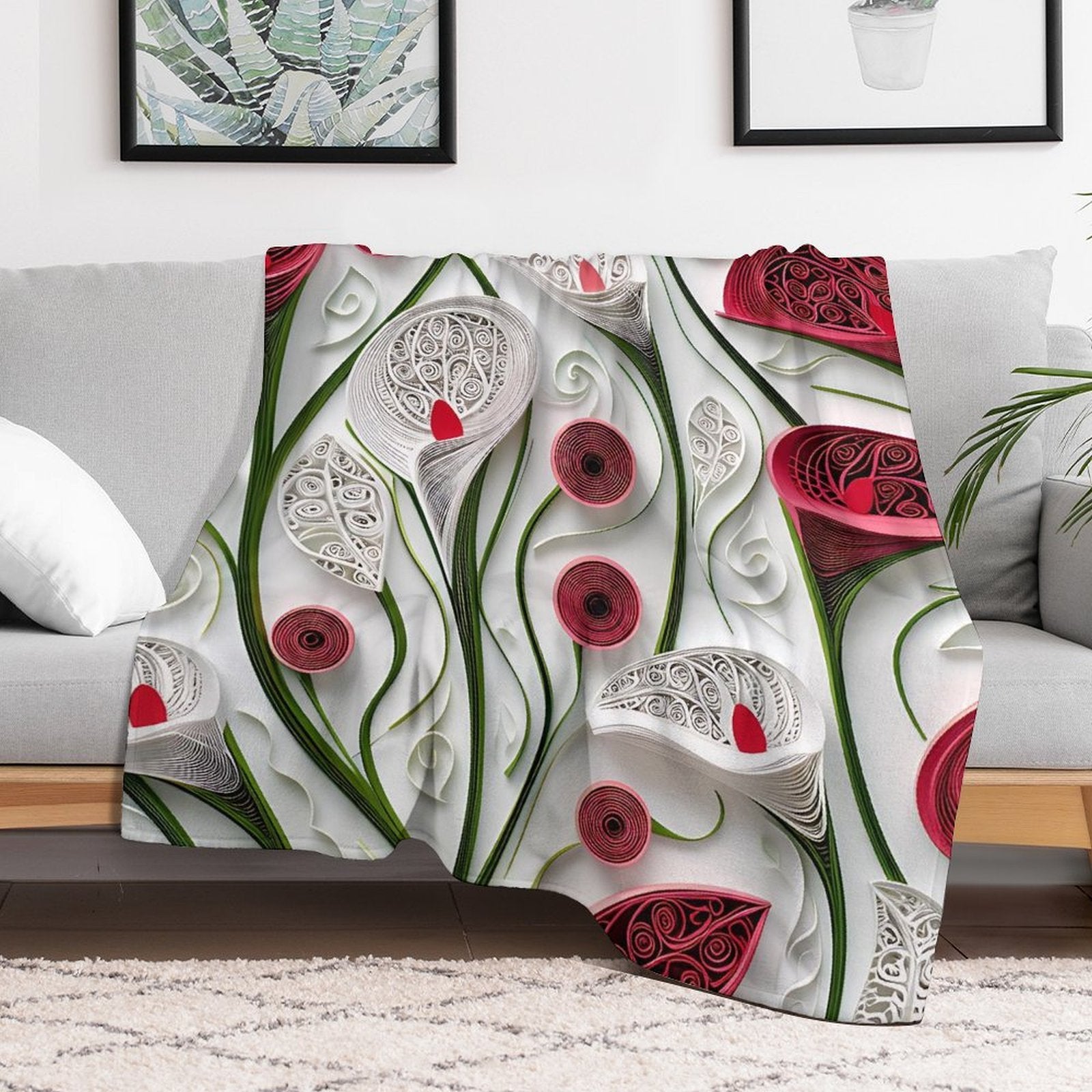 Anti-Pilling Flannel Blanket with 3D Red and White Floral Design