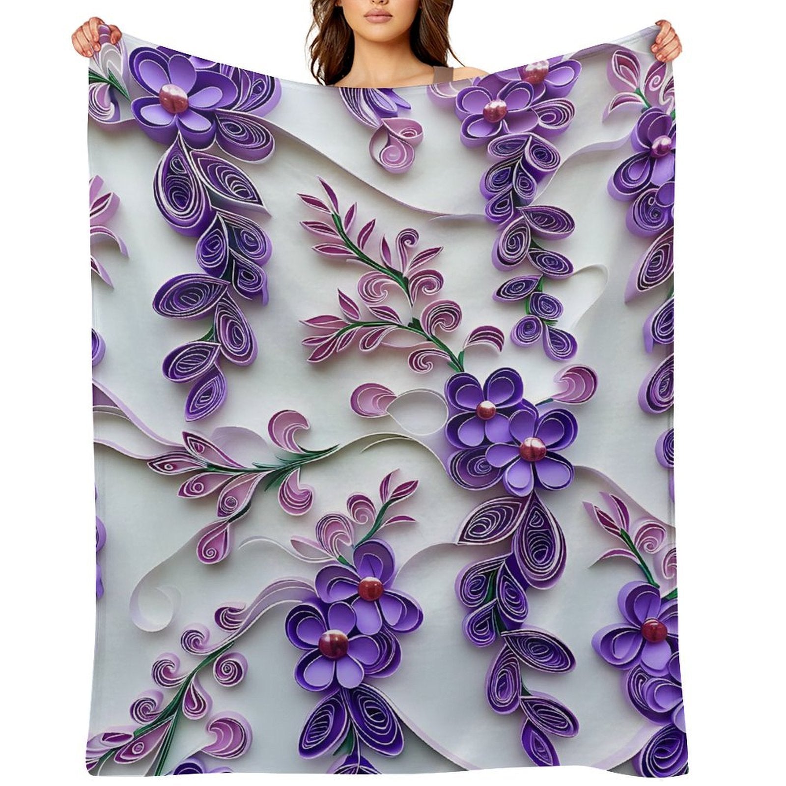 Soft Anti-Pilling Flannel Blanket with Purple Floral Pattern Design