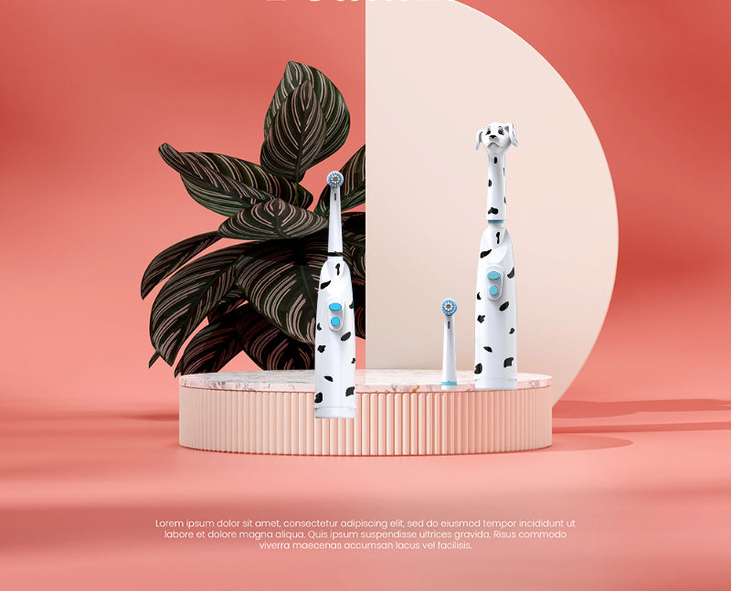 Kids Electric Toothbrush Cartoon Spotted Dog Round Head Soft Bristles Battery Powered With Special Dust Cover For Children Baby