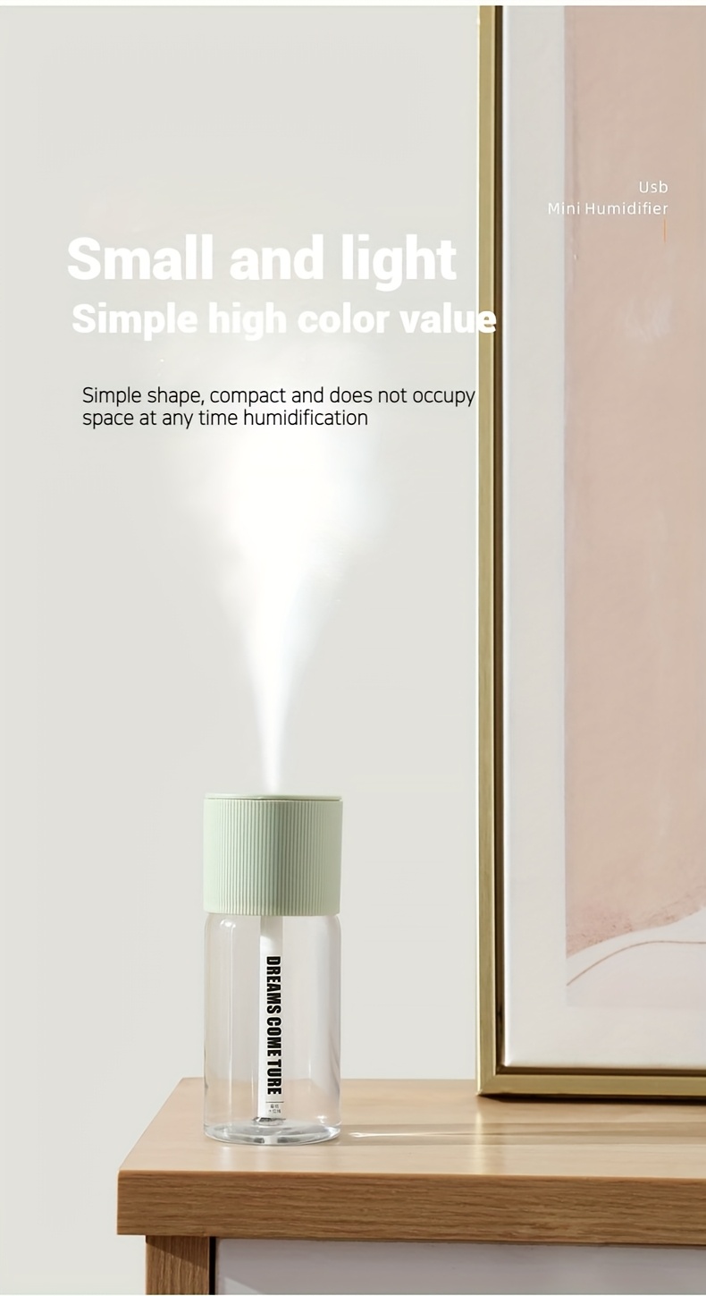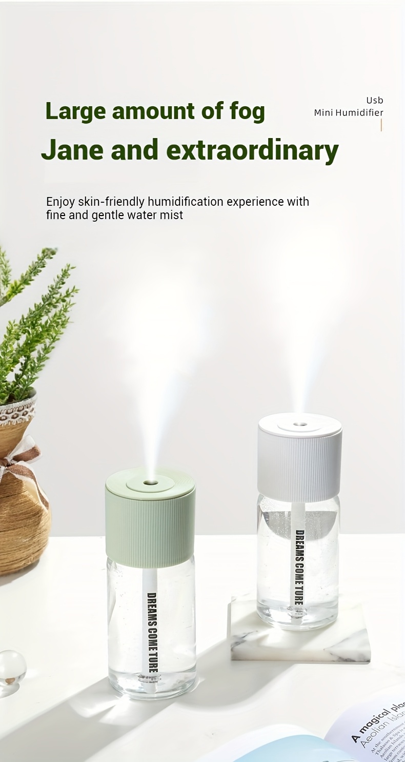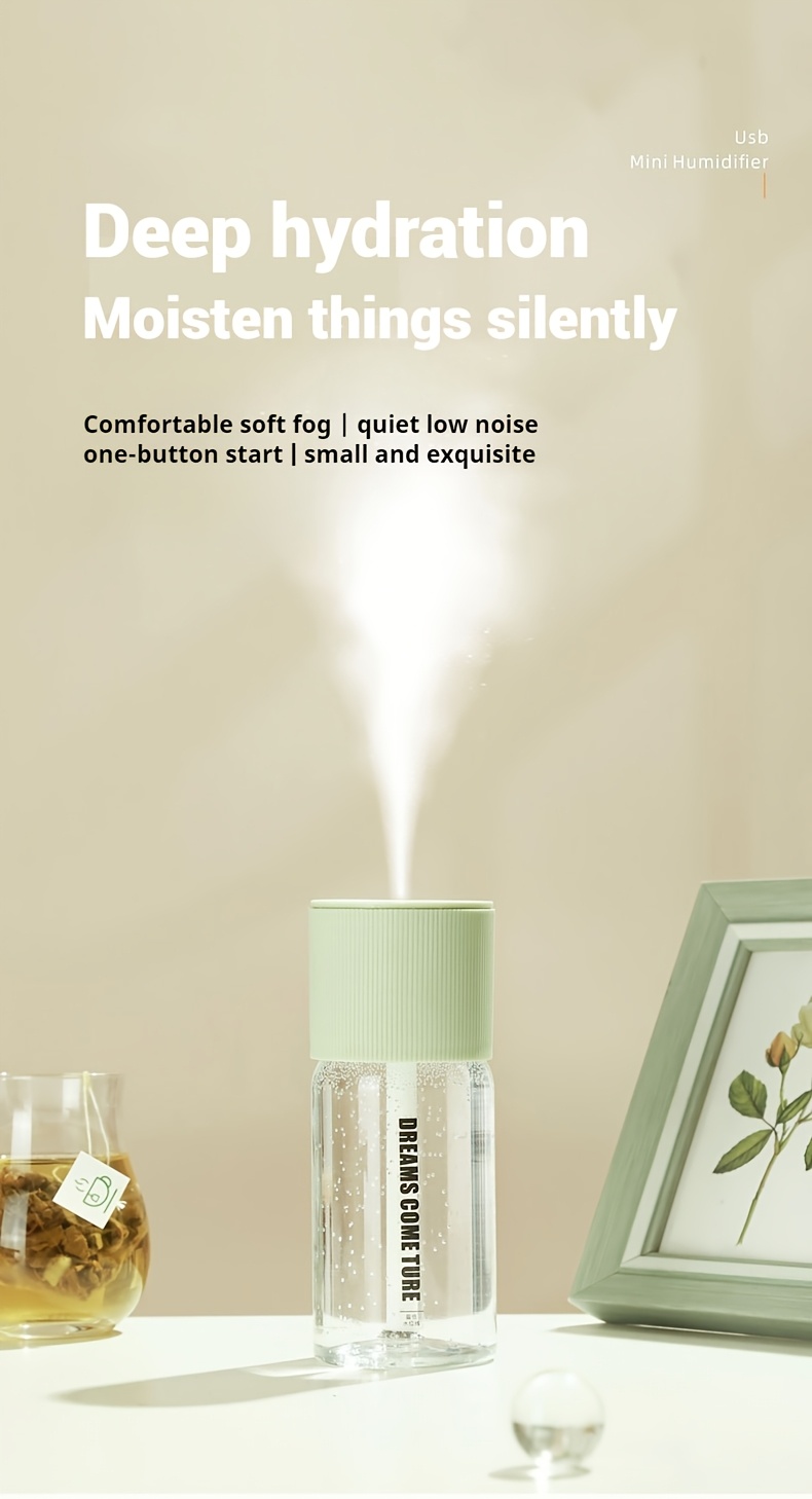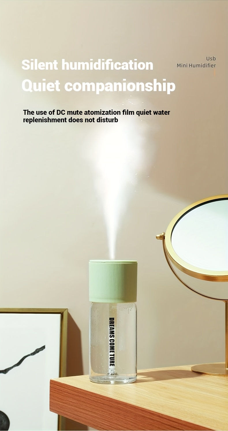 Aromatherapy Humidifier Compact USB Ultra-Quiet Large Mist Output Auto Shut-Off for Home Office Dorm Car Sleek Green Top Transparent Body Easy Top-Fill