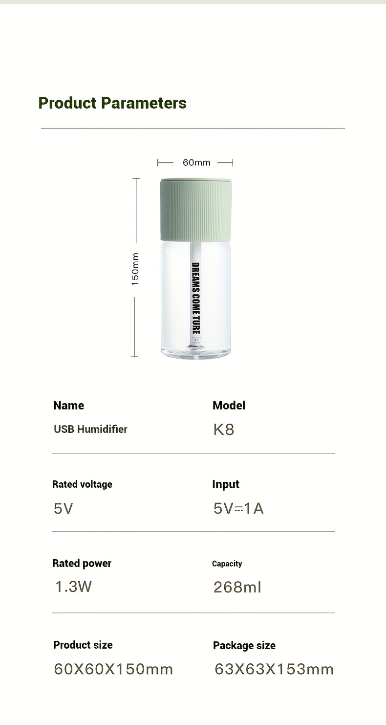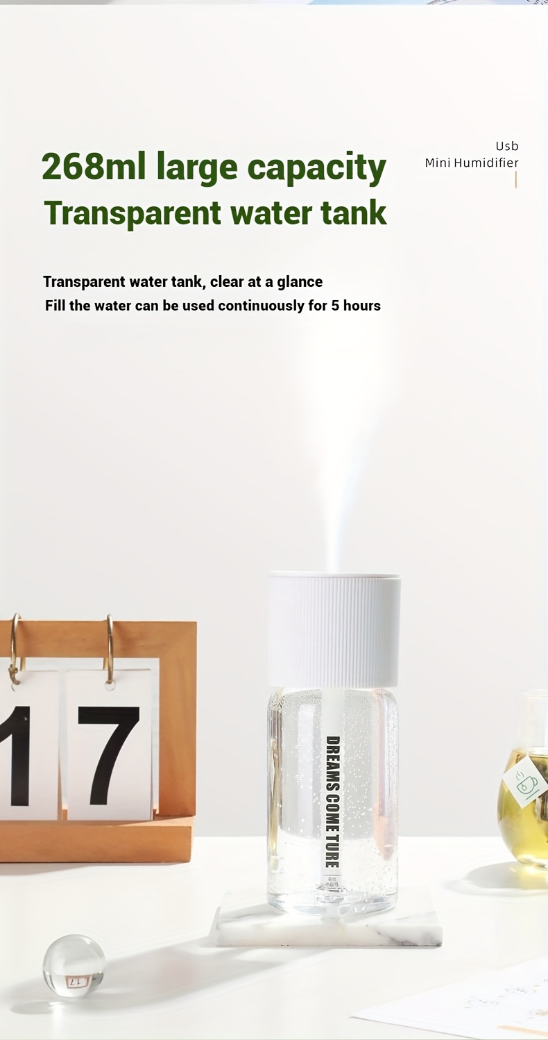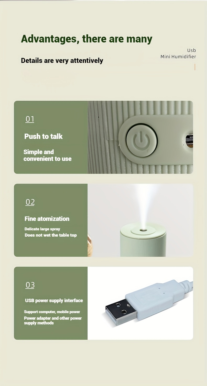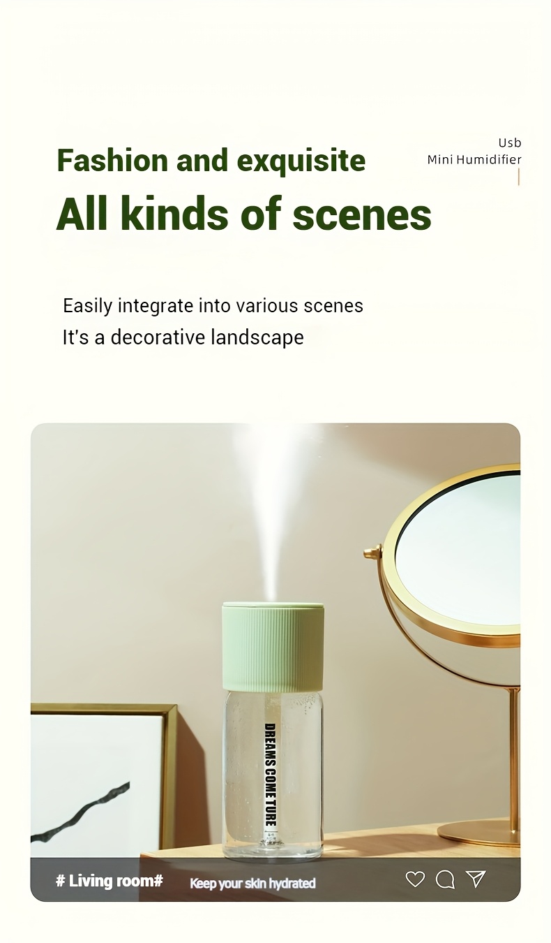 Aromatherapy Humidifier Compact USB Ultra-Quiet Large Mist Output Auto Shut-Off for Home Office Dorm Car Sleek Green Top Transparent Body Easy Top-Fill