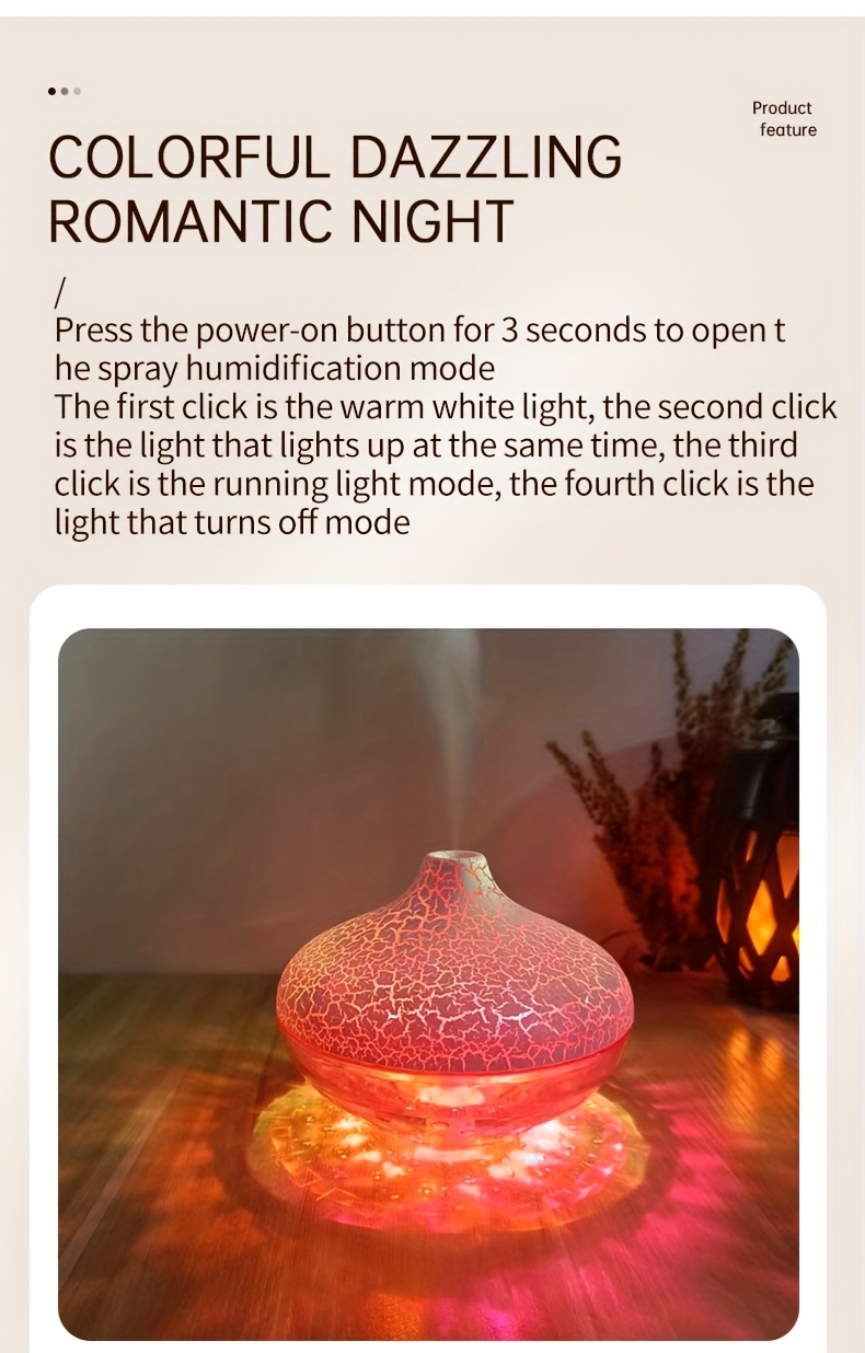 New Crystal Horse Lamp with USB Humidifier 300ml Aromatherapy Diffuser Colorful LED Atmosphere Lamp Silent Nano Mist Hydrator USB Powered