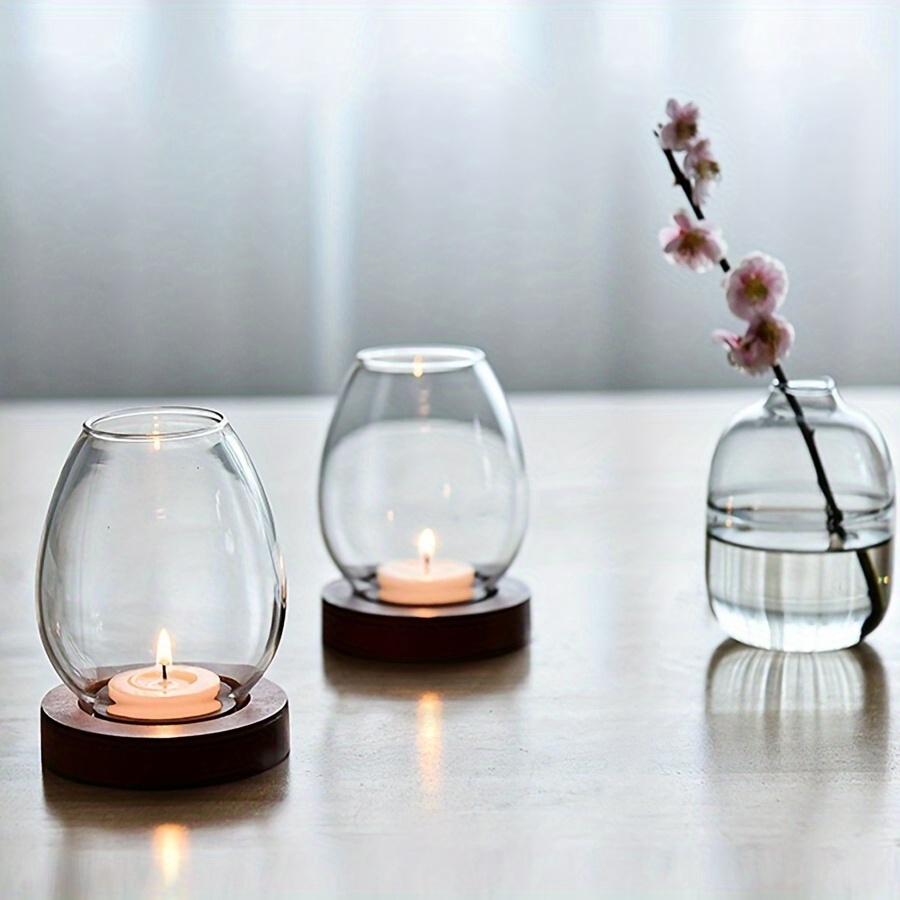 European Style Glass Candle Holders Transparent Round Candlesticks Tabletop Zen Design Votive Candle Holders for Wedding Halloween Thanksgiving