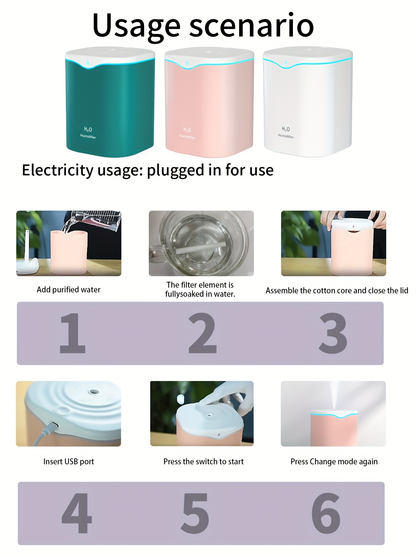 Extra Large 2000ml USB Humidifier - Cold Mist, Colorful Night Light, Single Nozzle for All Rooms