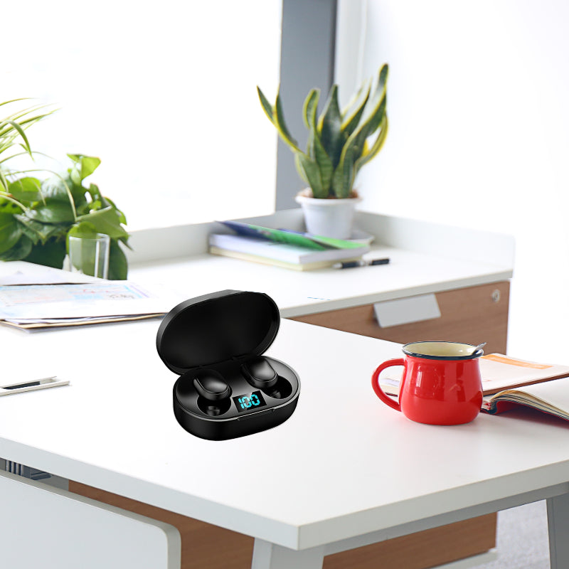 Charging process: 1. To charge the charging compartment, connect one end of the charging cable to the charging case's port and the other end to the power source. The charging compartment will display the remaining battery level and the LED will blink. Once the charging case is fully charged, the LED will stop blinking, indicating that the charging is finished!
