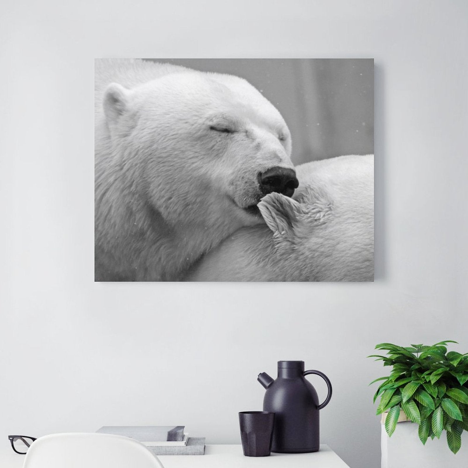 Polar Bear Love Black and White Canvas Art – Arctic Wildlife Wall Decor