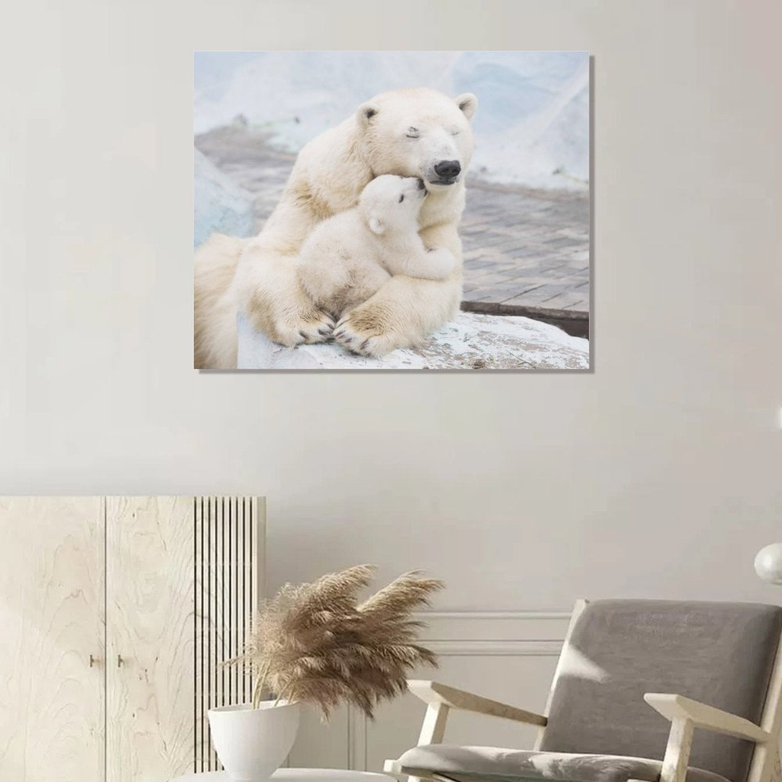 Polar Bear Family Hug Canvas Wall Art – Cozy Arctic Animal Painting for Home Decor