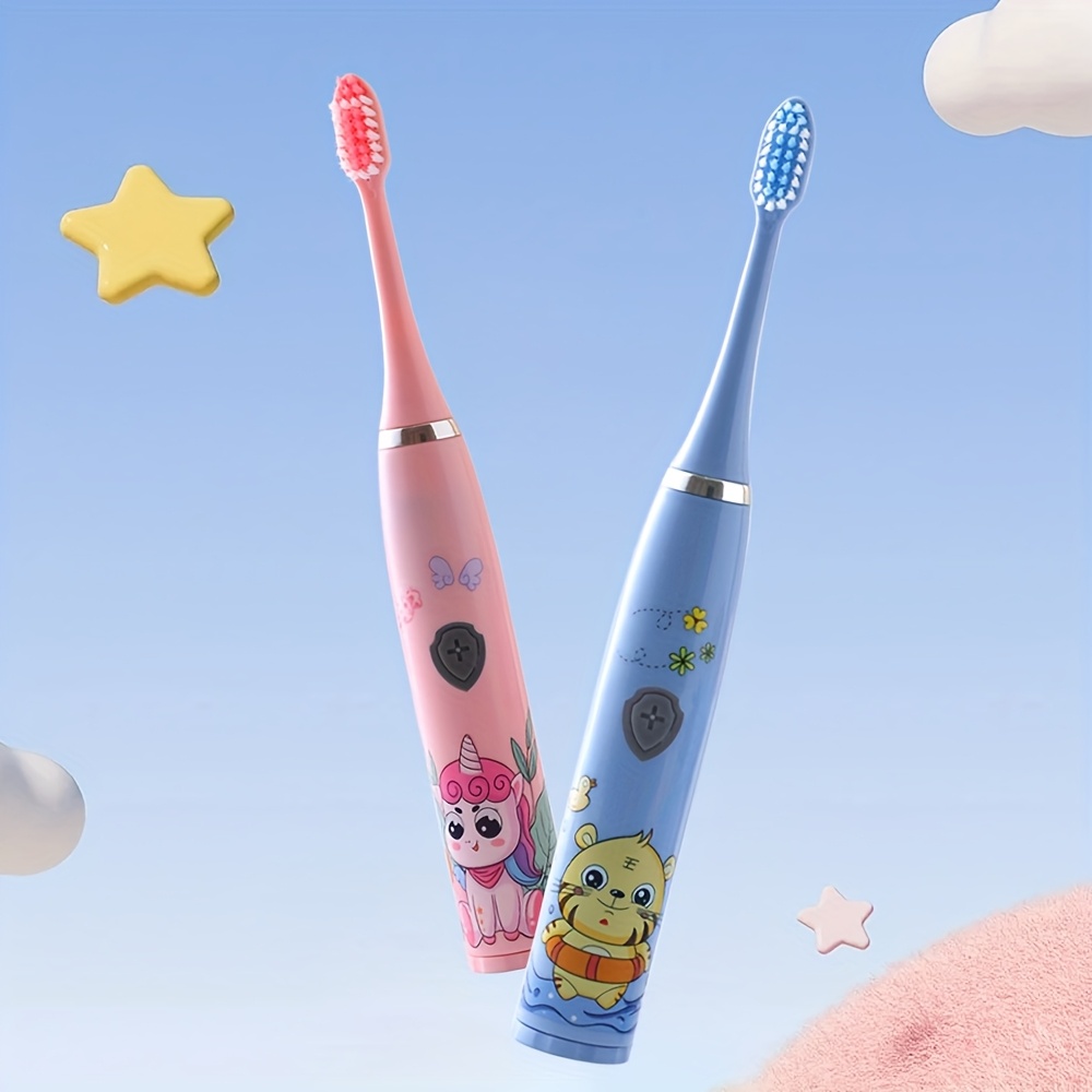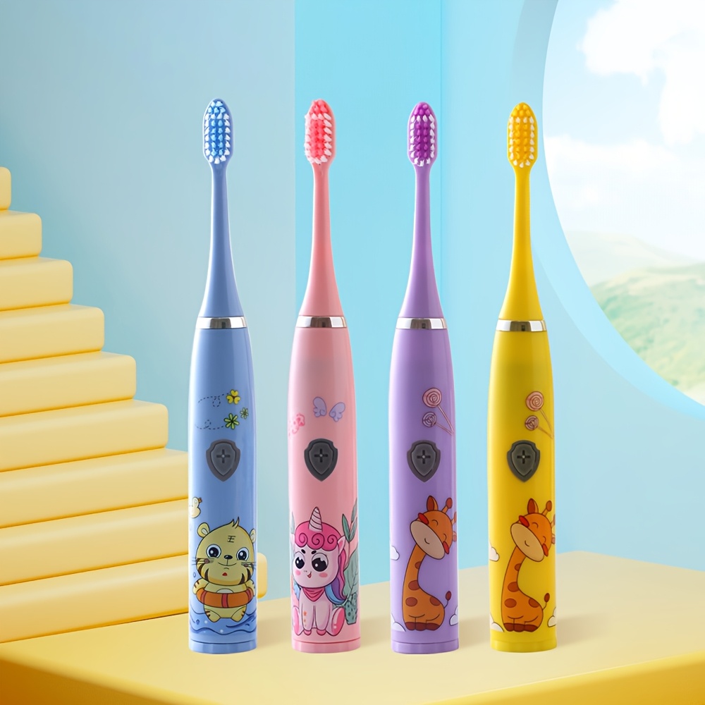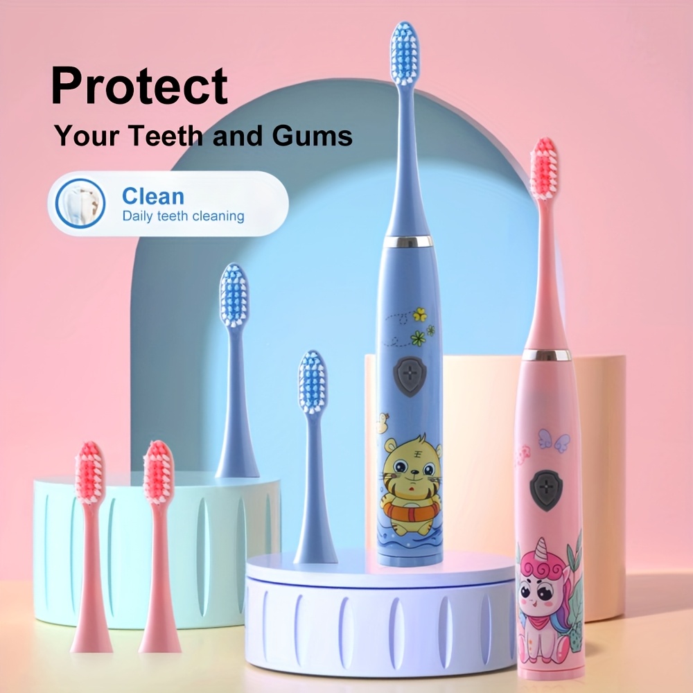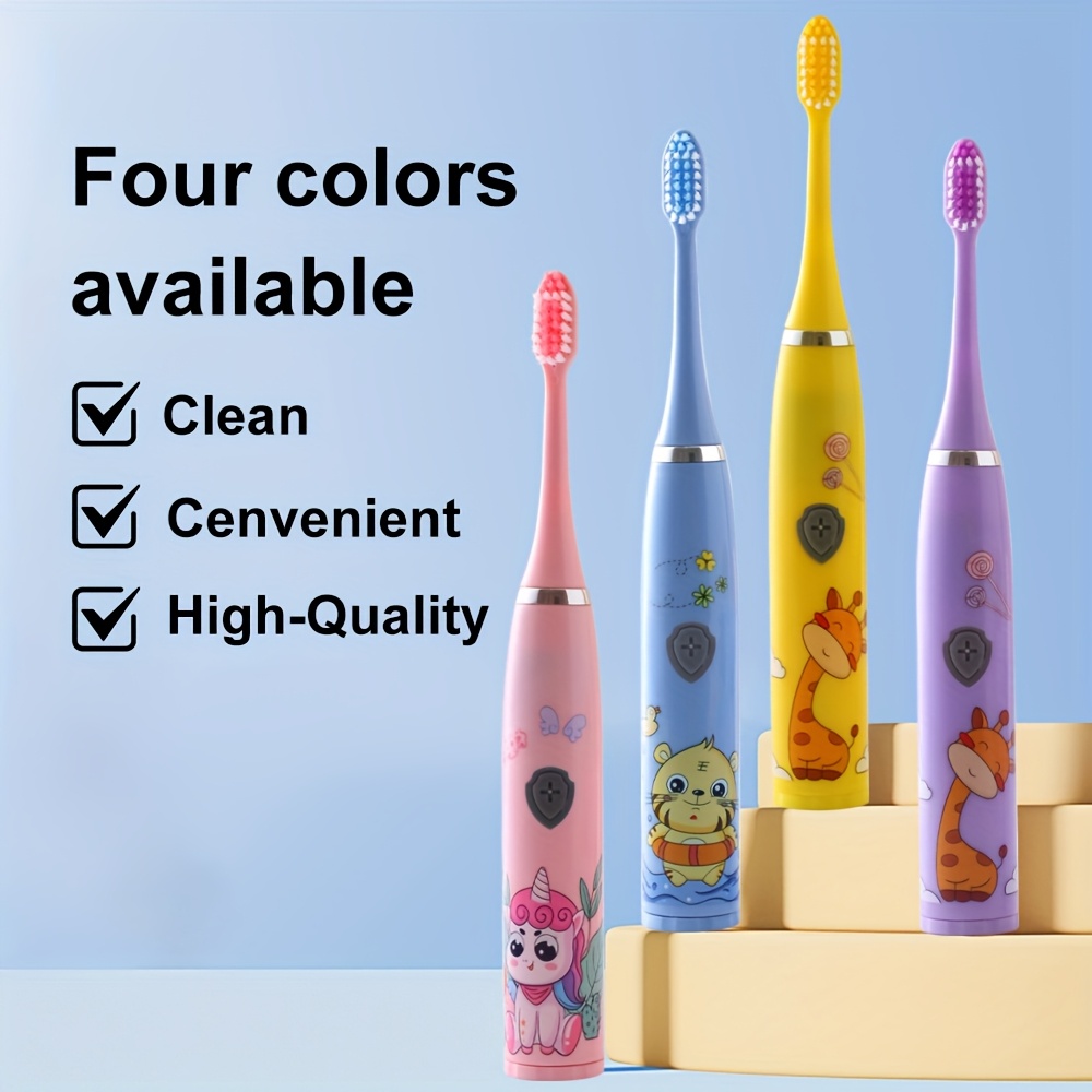Cute Cartoon Electric Toothbrush Model N604 with 3 Brush Heads Soft Bristles for Gentle Cleaning