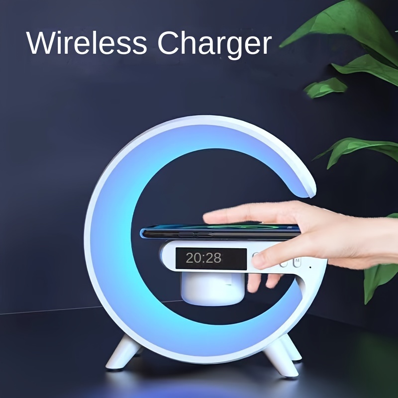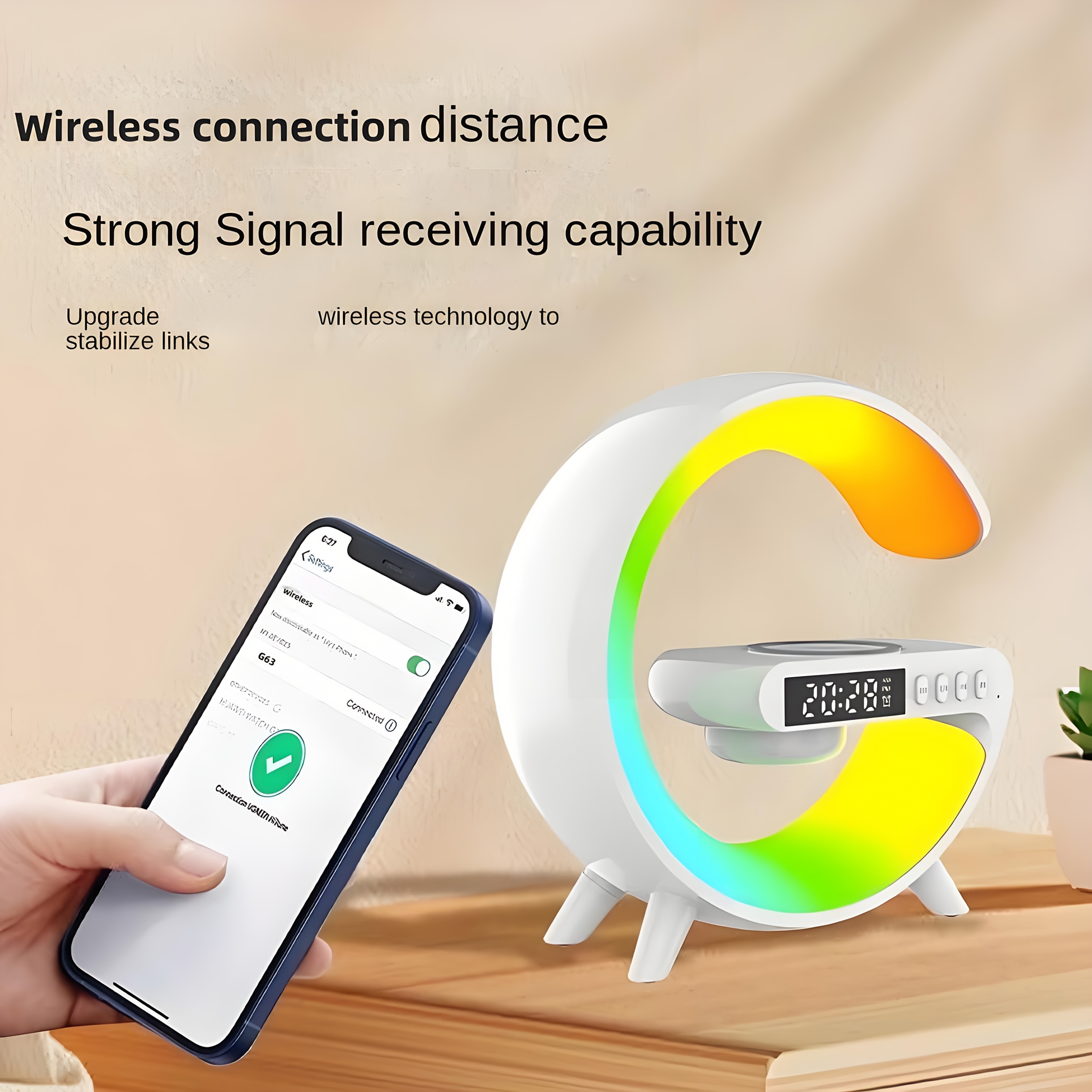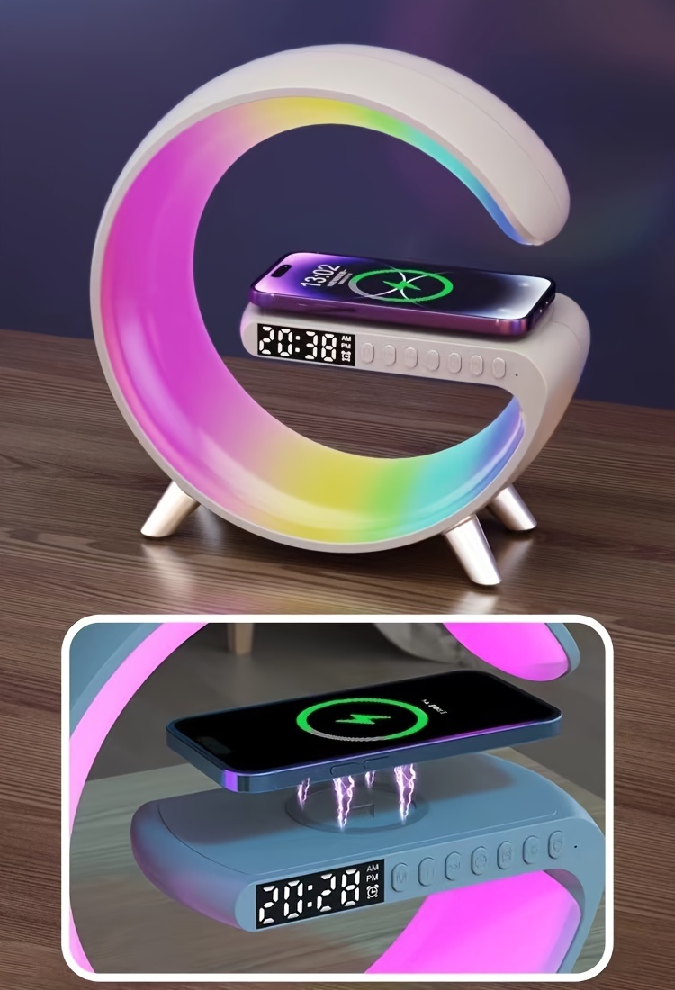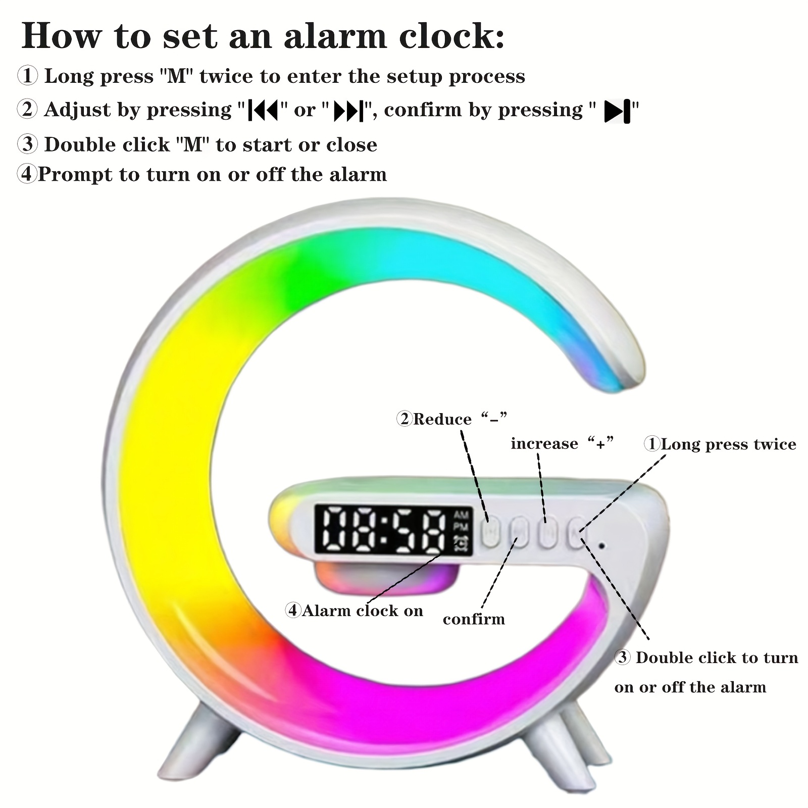 Multifunctional Table Lamp Speaker Wireless Charging RGB LED Lights Hi-Fi Speaker with Alarm Clock Time Display TF Card Support