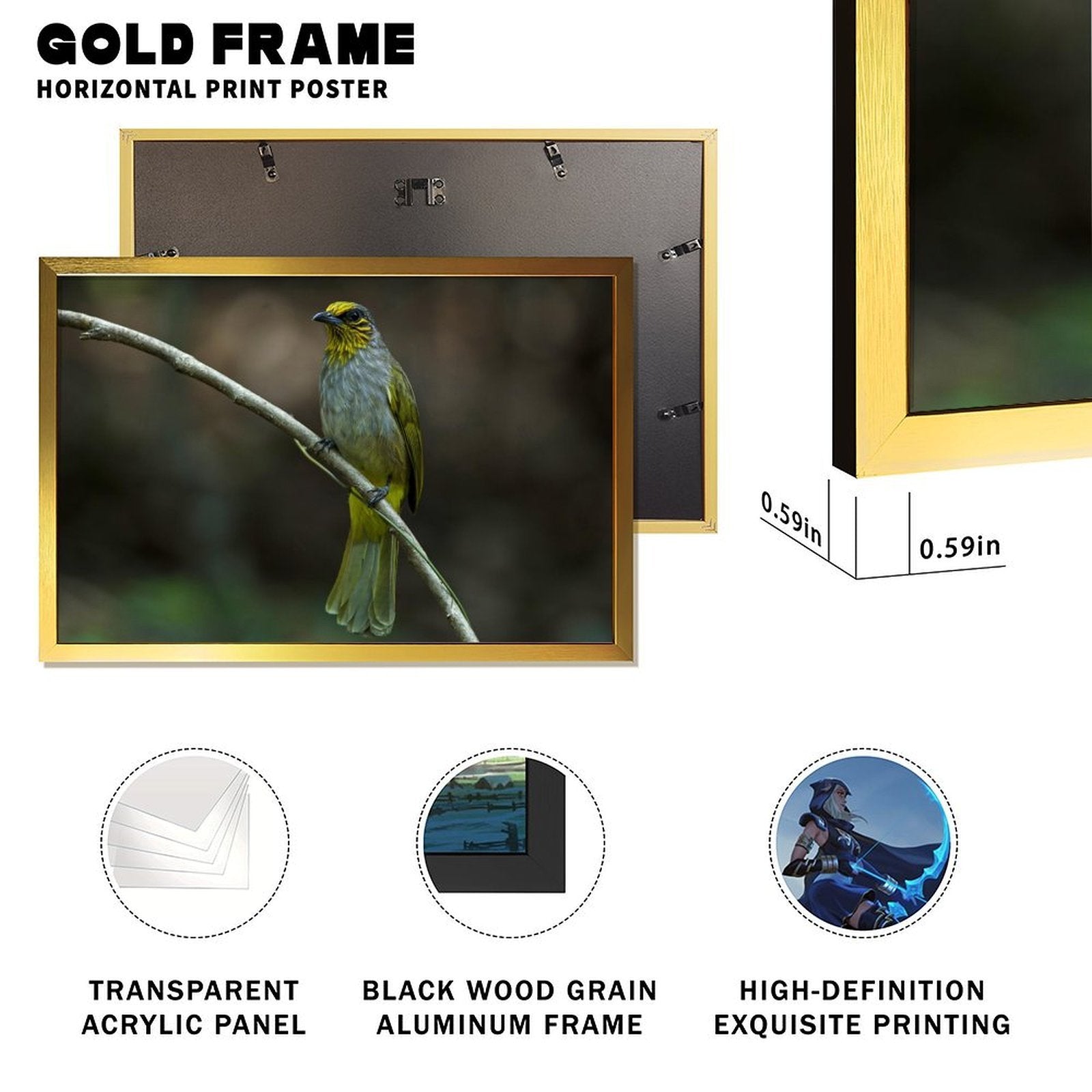 Yellow-Green Songbird on Branch – Elegant Nature Wall Art Print-148