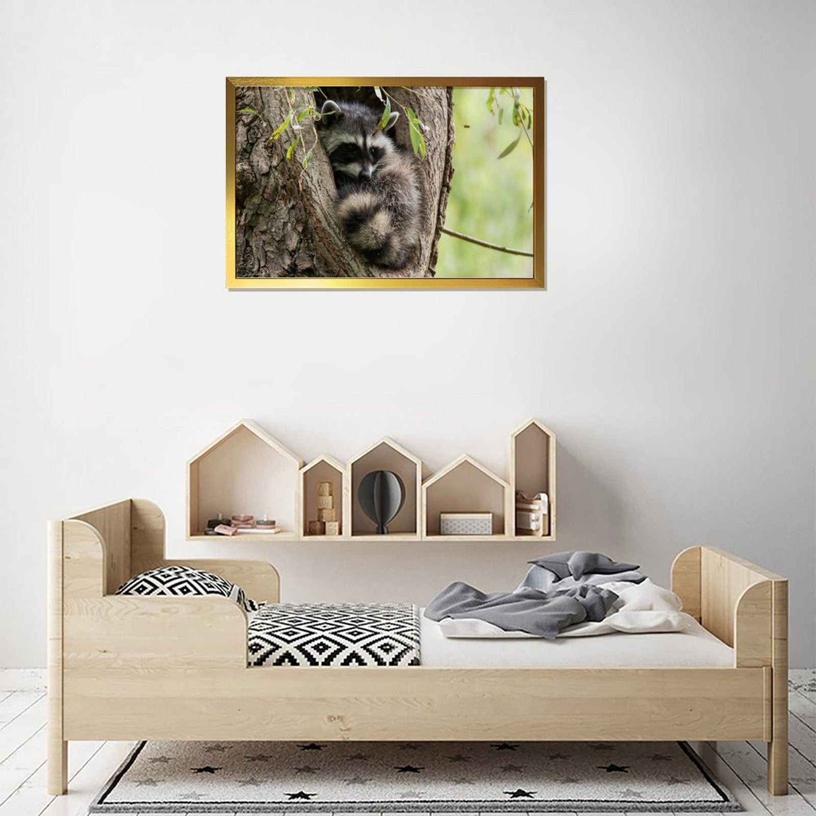 Raccoon in Tree Wall Art Gold Frame Animal Home Decor-011