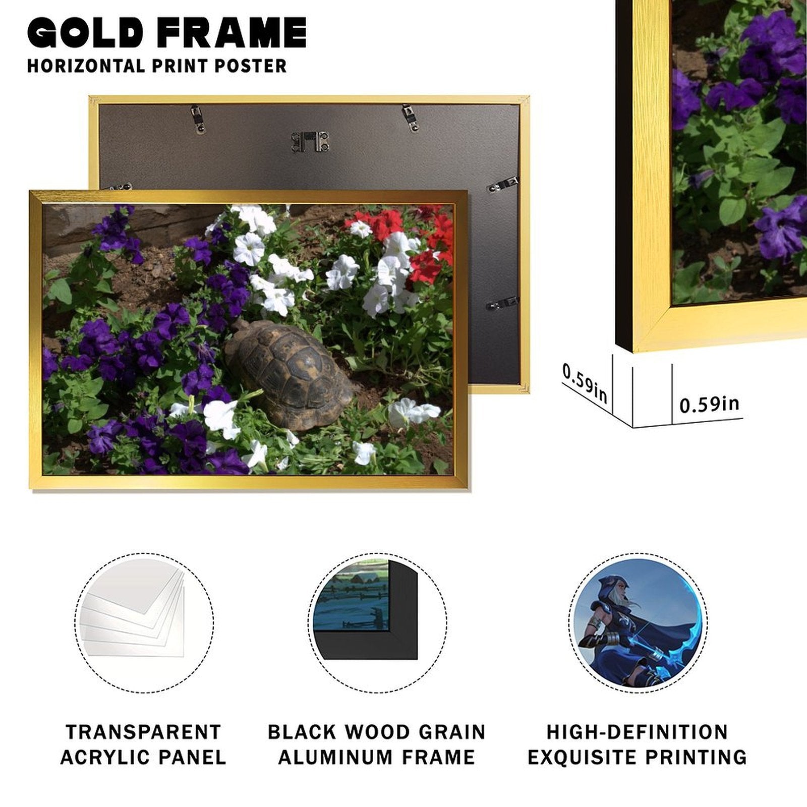 Turtle in Garden Wall Art Gold Frame Nature Decoration