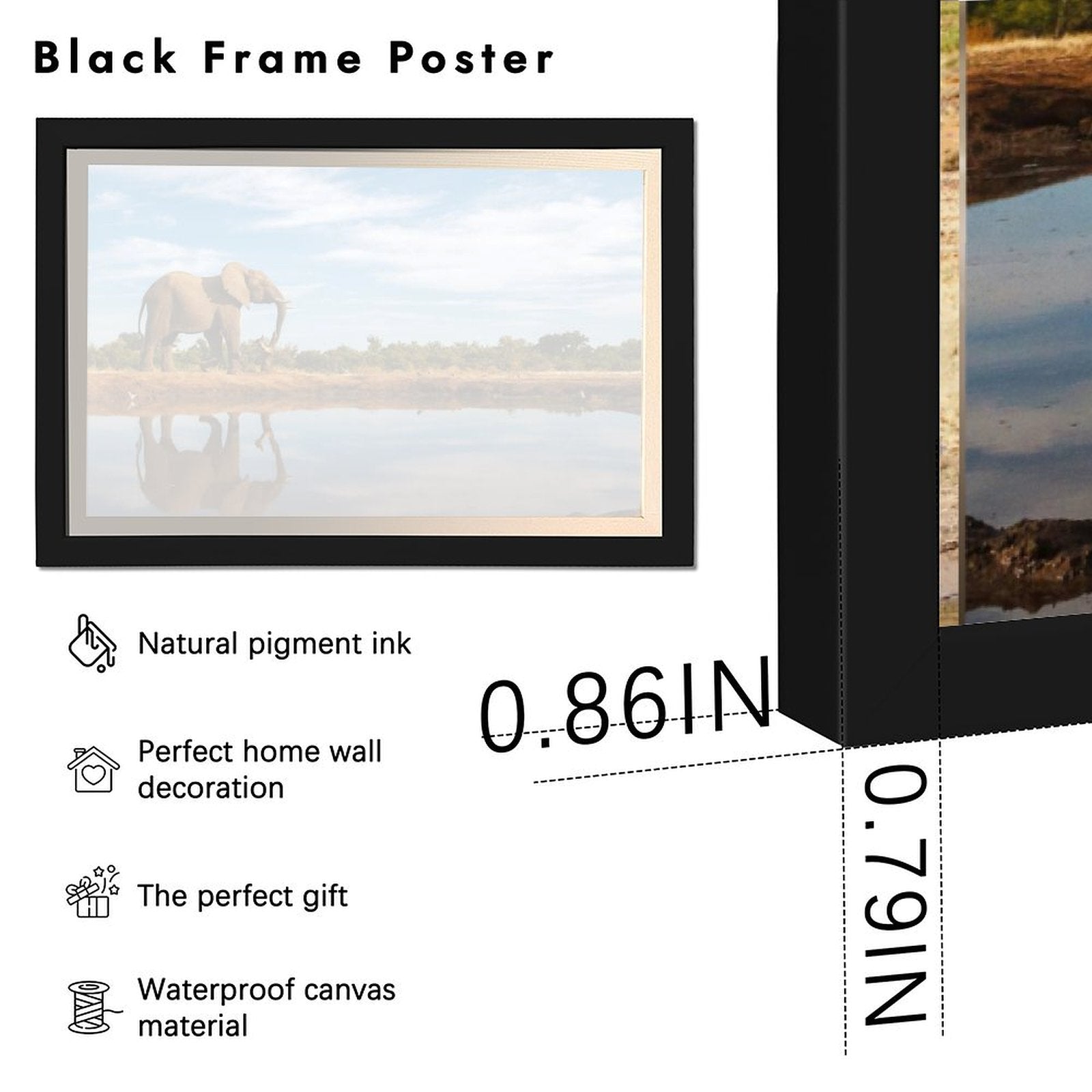 Elephant by the Water Canvas Wall Art – Modern Framed Décor 013