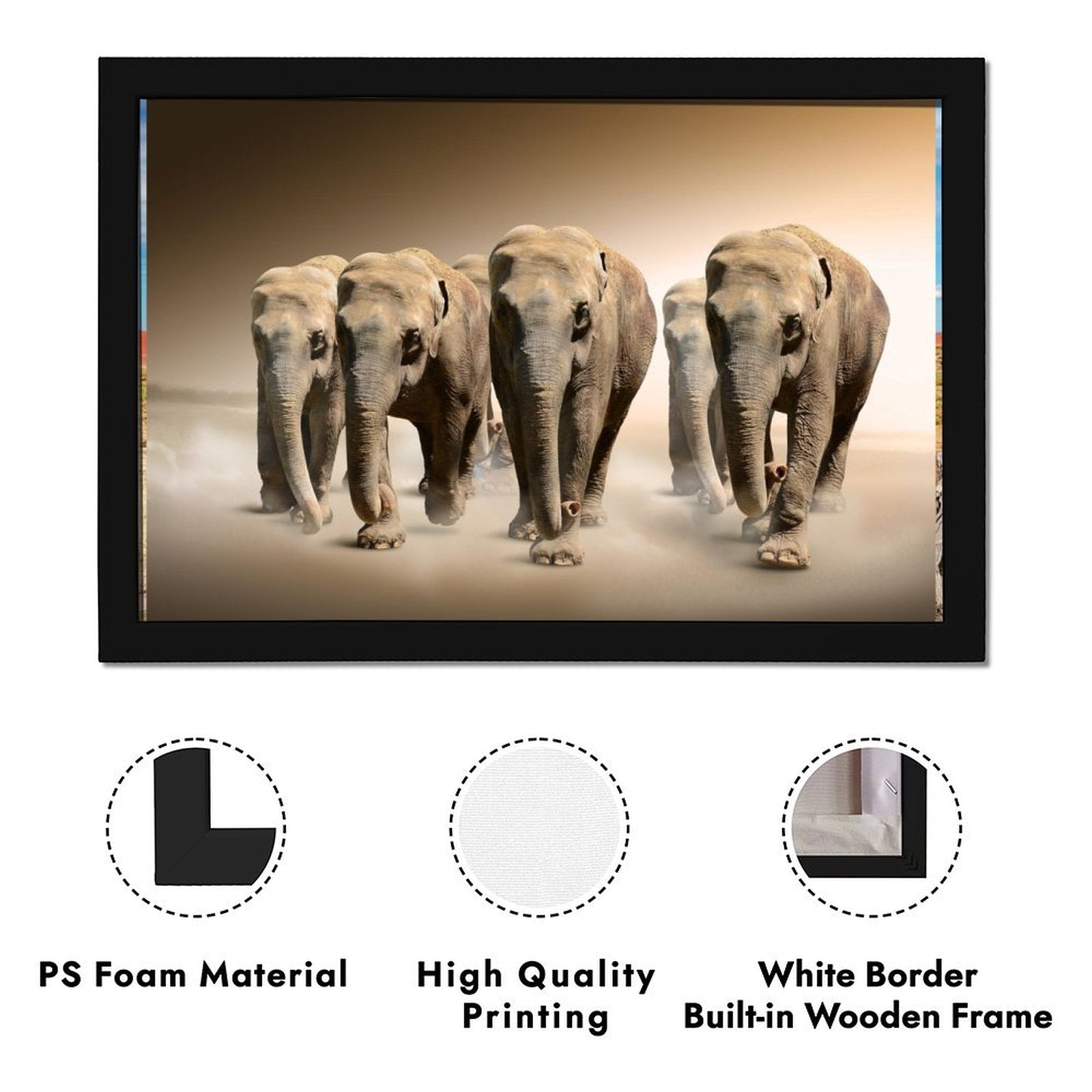 Elephant Herd Canvas Wall Art – Modern Framed Home Décor- 032