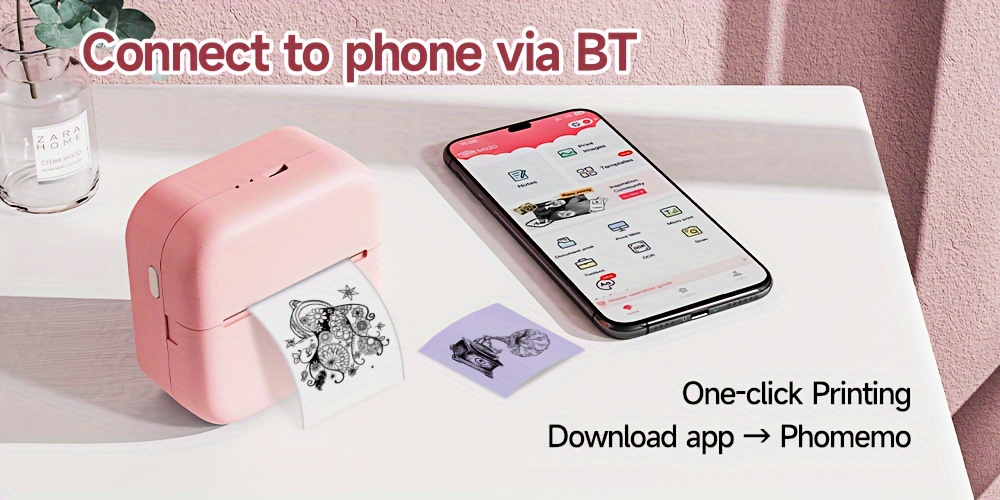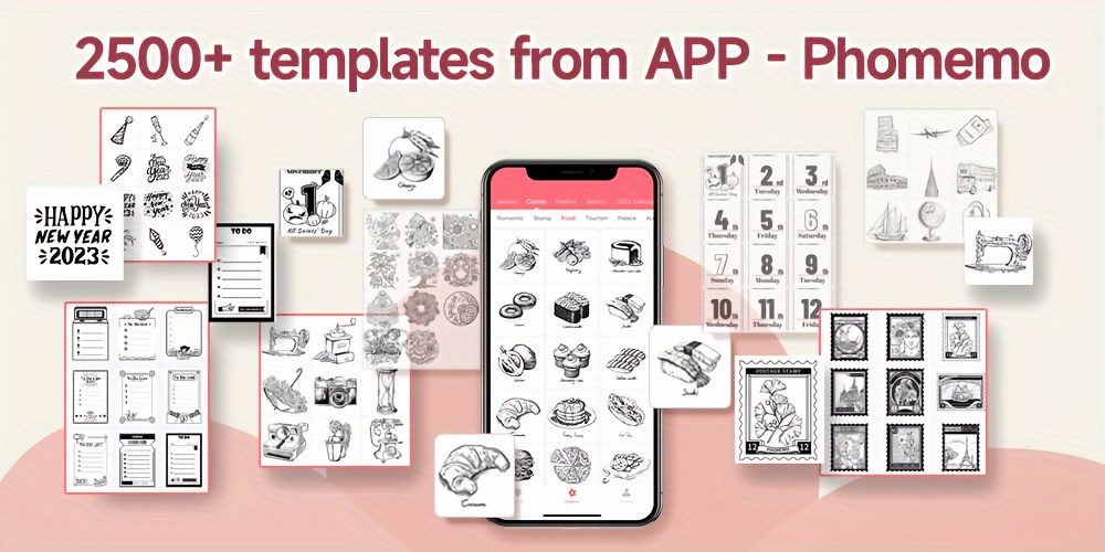 Phomemo M02L Inkless Thermal Printer Sticker Maker for iOS Android Office Documents Printing with Non Adhesive Paper Roll Desk Organization Accessory