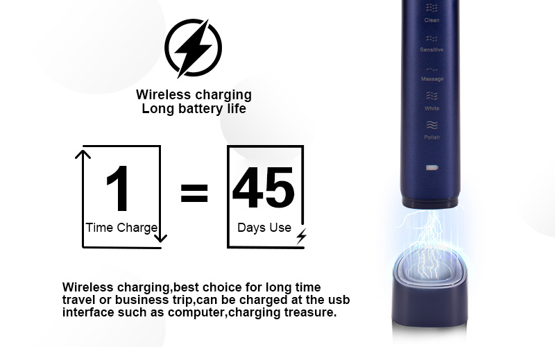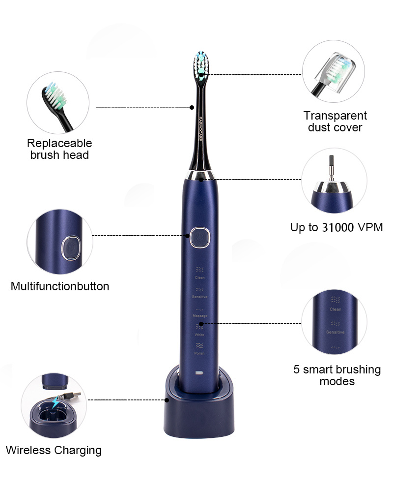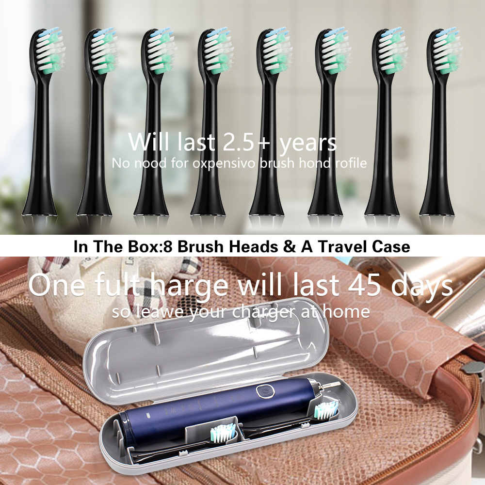Multimode Electric Toothbrush IPX7 Waterproof Rechargeable with 8 Brush Heads Compact Sleek Design for Adults Gum Protection