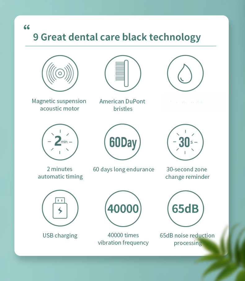 Electric Toothbrush Automatic 5 Modes 6 Replacement Heads by SARMOCARE USB Rechargeable for Home Travel Best Gift for Parents