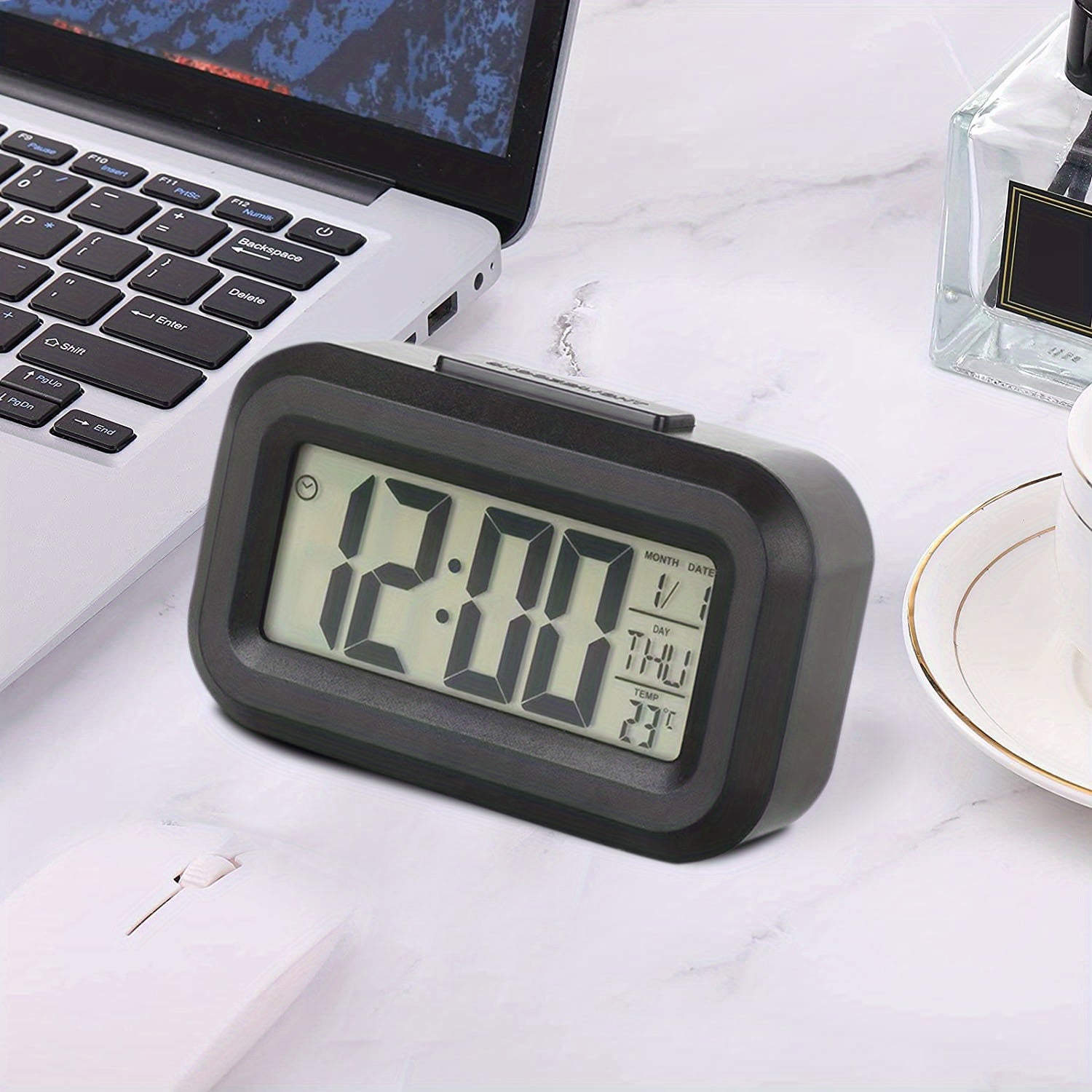 Multifunctional 1pc Digital Alarm Clock Black Luminous Temperature Calendar Display Battery Operated for Office Desk