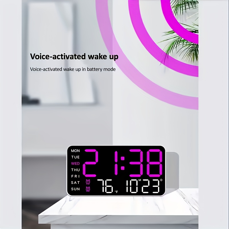 Voice Control Alarm Clock USB Powered LED Digital Clocks Temp Date Week Display 12/24H DST Brightness Adjustment 2-Alarms Clocks