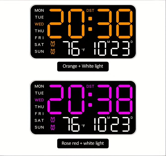 Color: As shown in the pictureUSB Cable Length:200cm/78.74inchPackage size: 22*12*4cm/8.7*4.7*1.6inchProduct size: 21.5*11*3cm/8.5*4.3*1.1inchPackage List:1x Digital Alarm Clock1x 200cm USB Cable1x InstructionNOTE 1: Remove the protective flim on Clock Screen,it will be brighter.