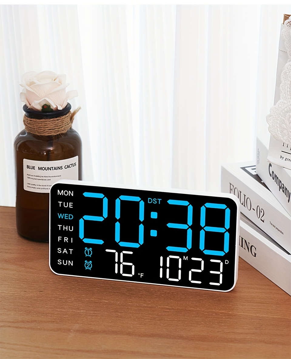 6. DST FunctionPress "-" button more than 3s in time state to turn on/off DST mode7. Voice control functionAAA Battery mode can be waken up by voice control.(Batteries Not Included)8. 12/24 hour format For Switch(1)Time Display(2)Press SET button more than 3s 24Hr Display(3)Press "+/-" button can For Switch to 12Hr9. ℃/℉ SwitchingPress "-" button more than 3s to For Switch ℃/℉Specification:Material: plasticPower type: external power supply(USB powered)