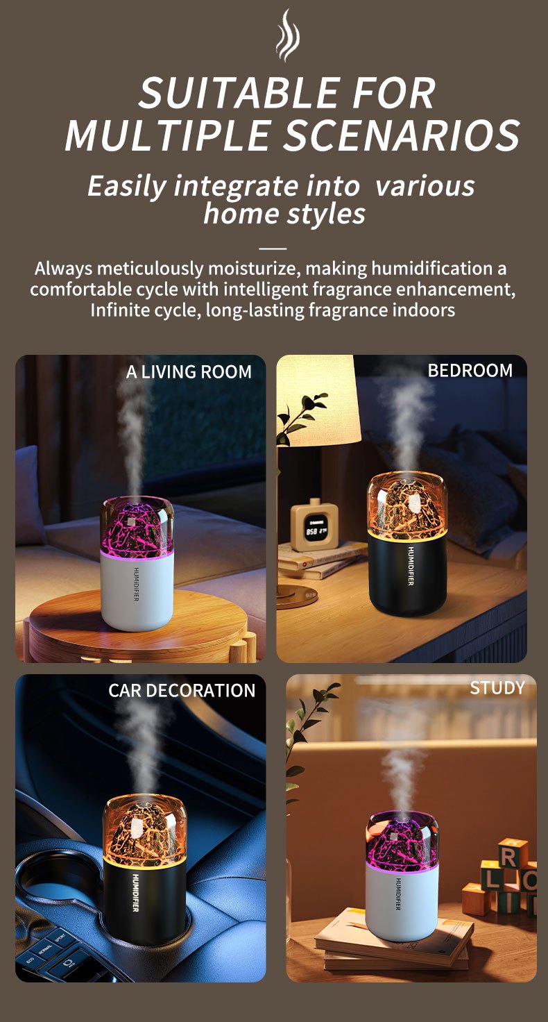 Portable Aromatherapy Diffuser & Mini Humidifier USB-Powered for Home Car Office Compact ABS Plastic Design with Blue Light 36V Safe for Dry Air Plants Pets