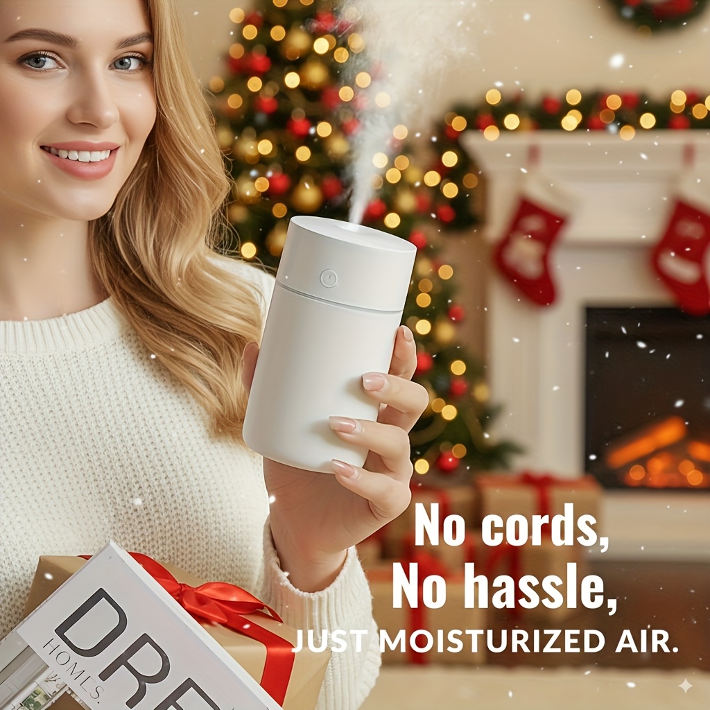 1200mAh Cordless Portable Soundwave technology Cool Mist Air Humidifier with Ambient Night Light, Quiet USB Mini Humidifier for Bedroom, Office, Car, Holiday Gift for Christmas & Halloween